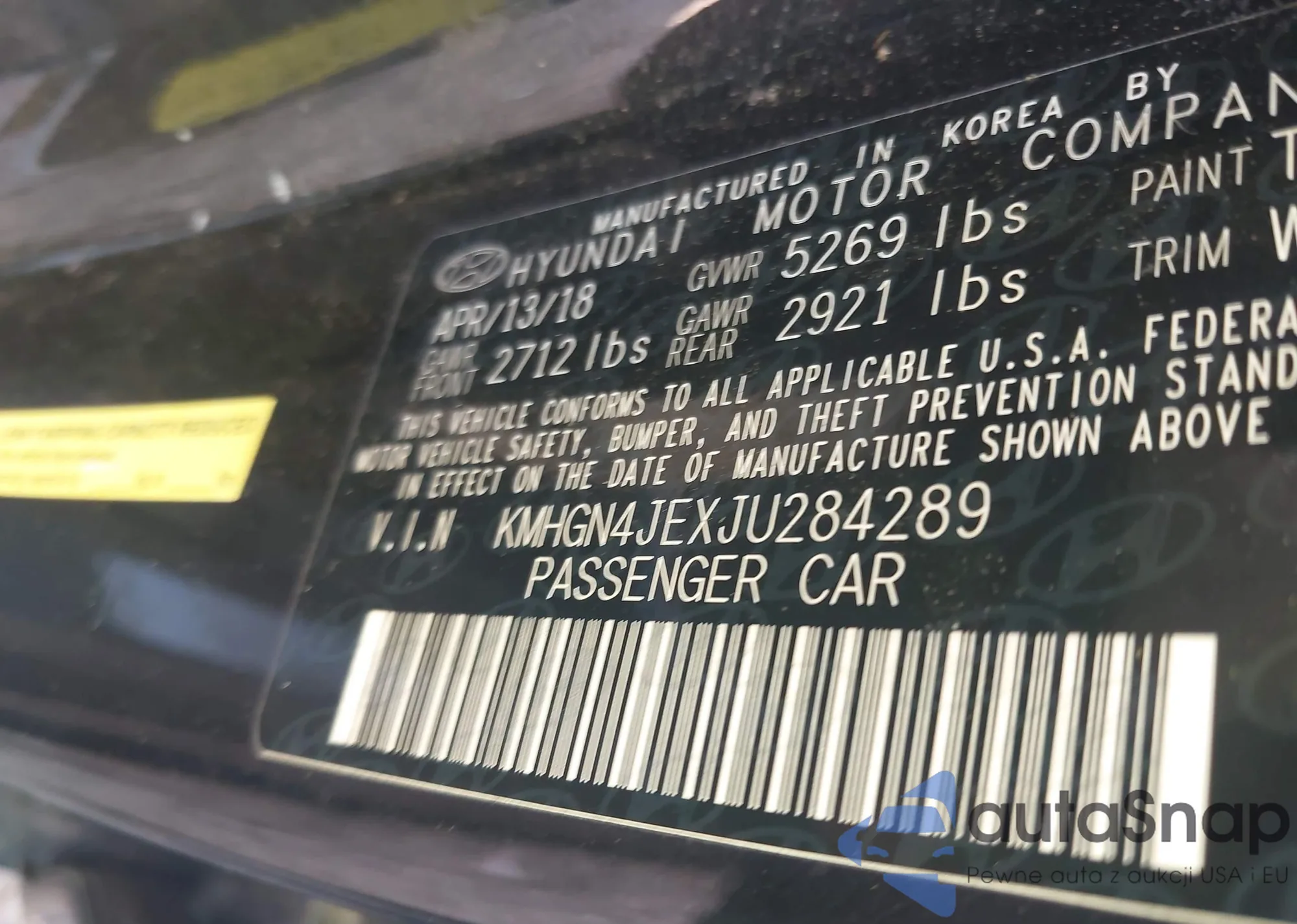 LOT: 43359380 VIN: KMHGN4JEXJU284289
