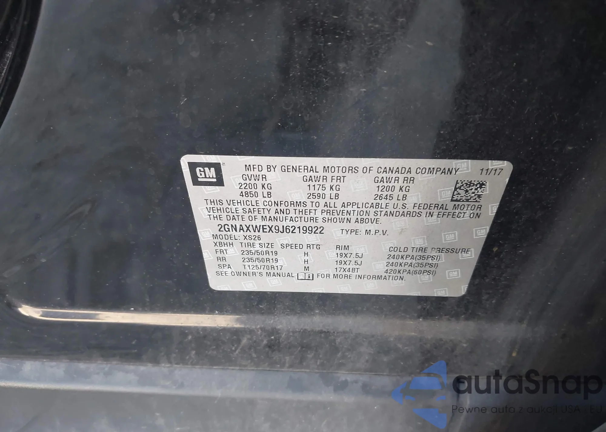 • VIN 2GNAXWEX9J6219922