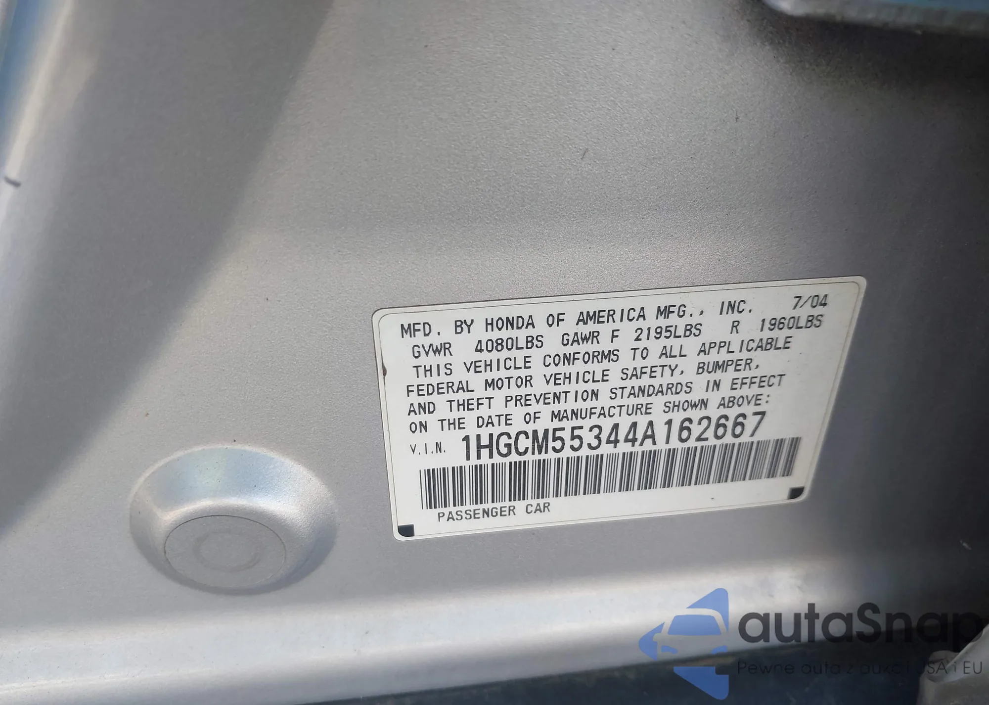 • VIN 2HGFA1F96AH552930