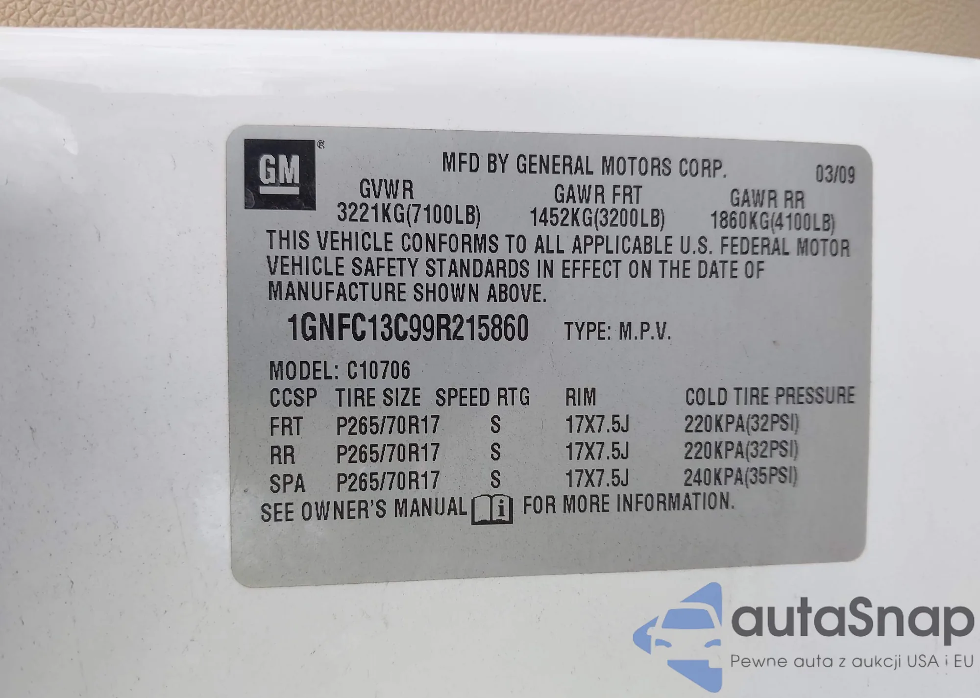 LOT: 43342145 VIN: 1GNFC13C99R215860