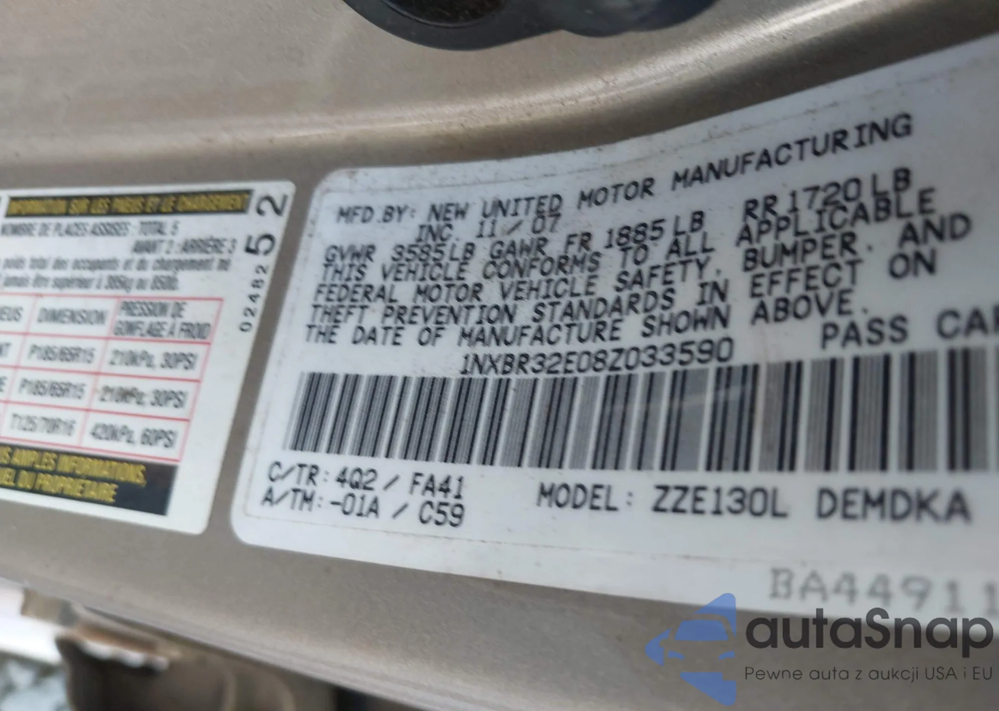 • VIN 1NXBR32E08Z033590