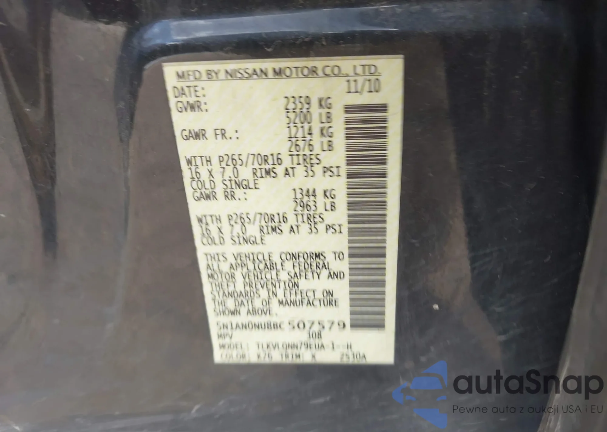 • VIN 5N1AN0NU8BC507579