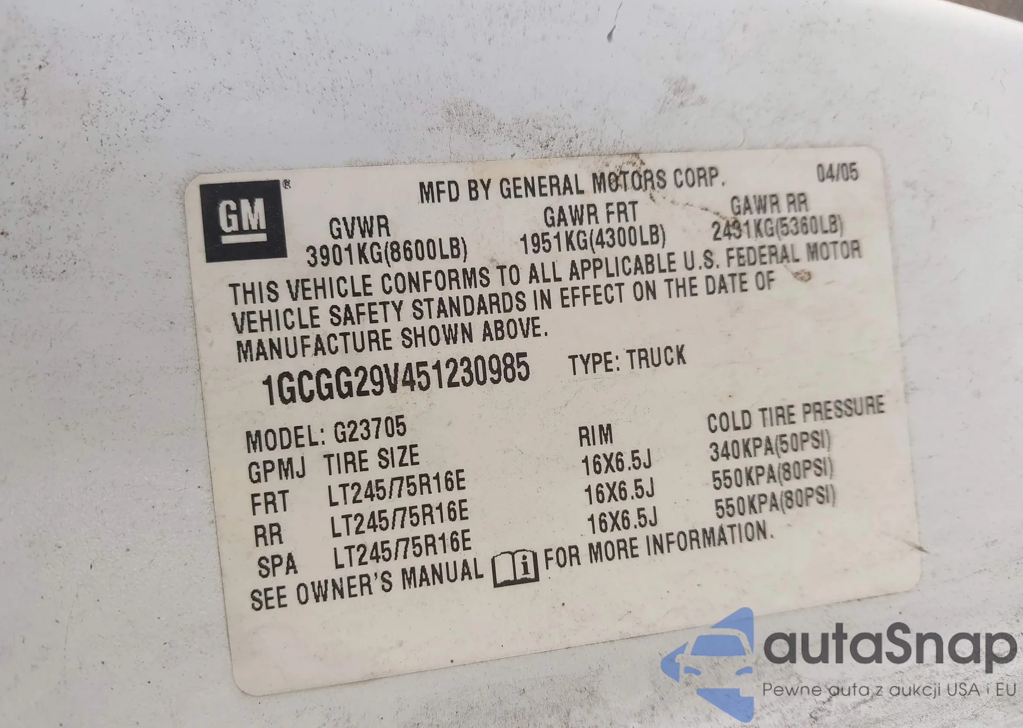 • VIN 1FTYR15E45PA42477
