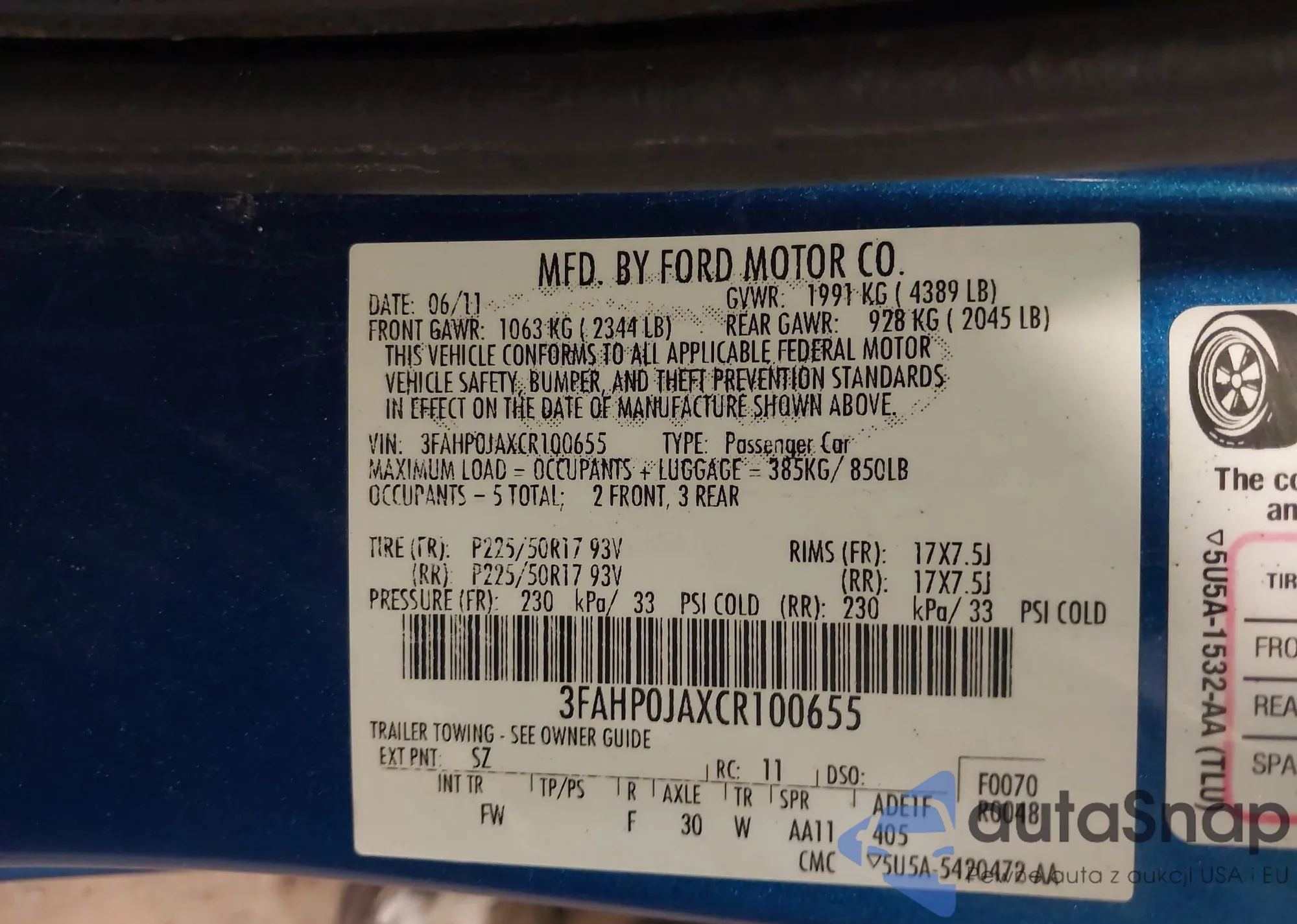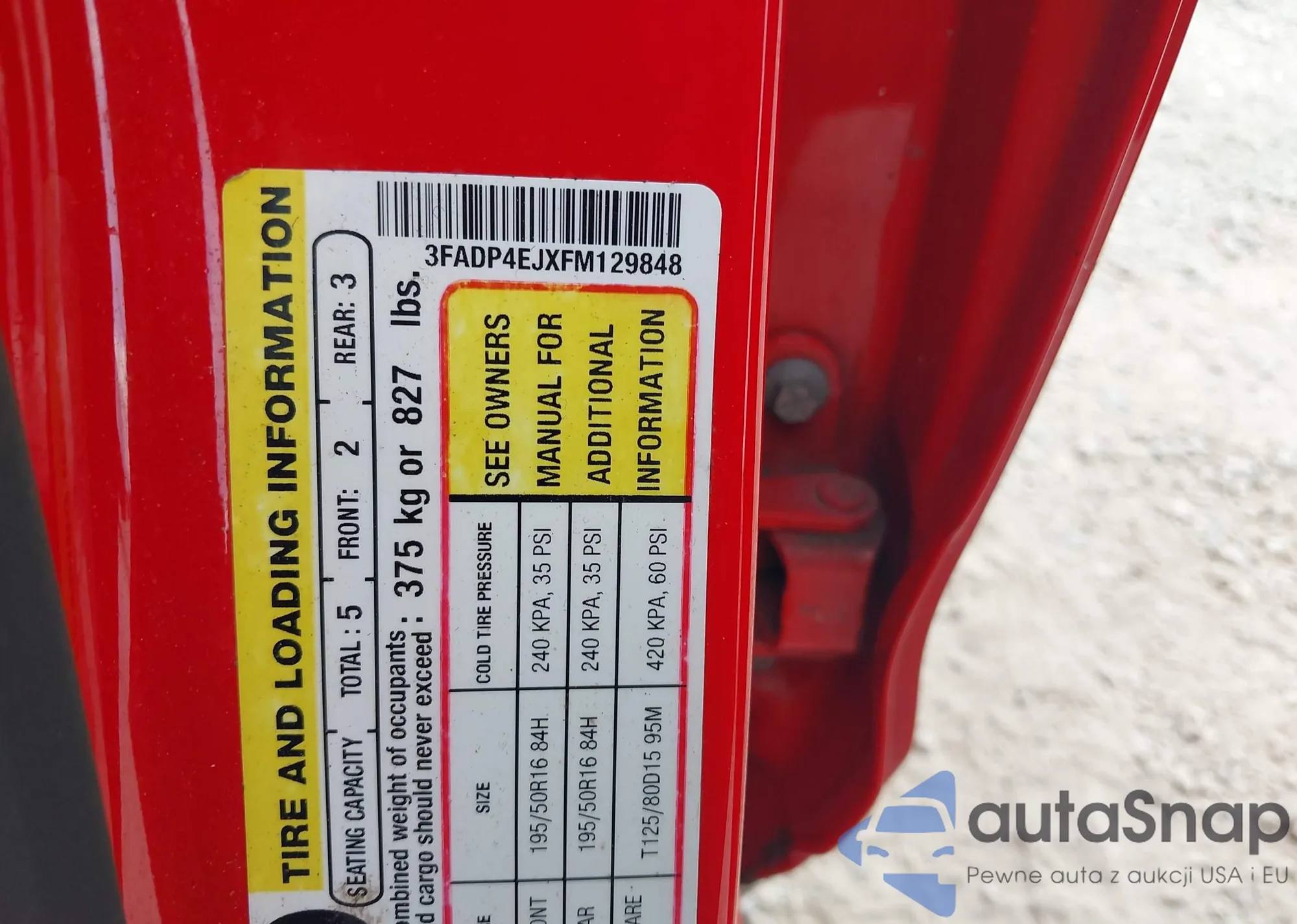 • VIN 3FADP4EJXFM129848