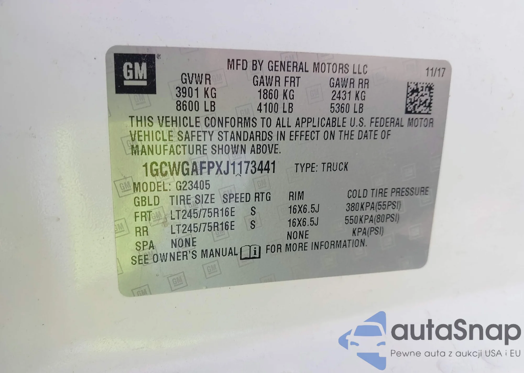 • VIN 1GCWGAFPXJ1173441