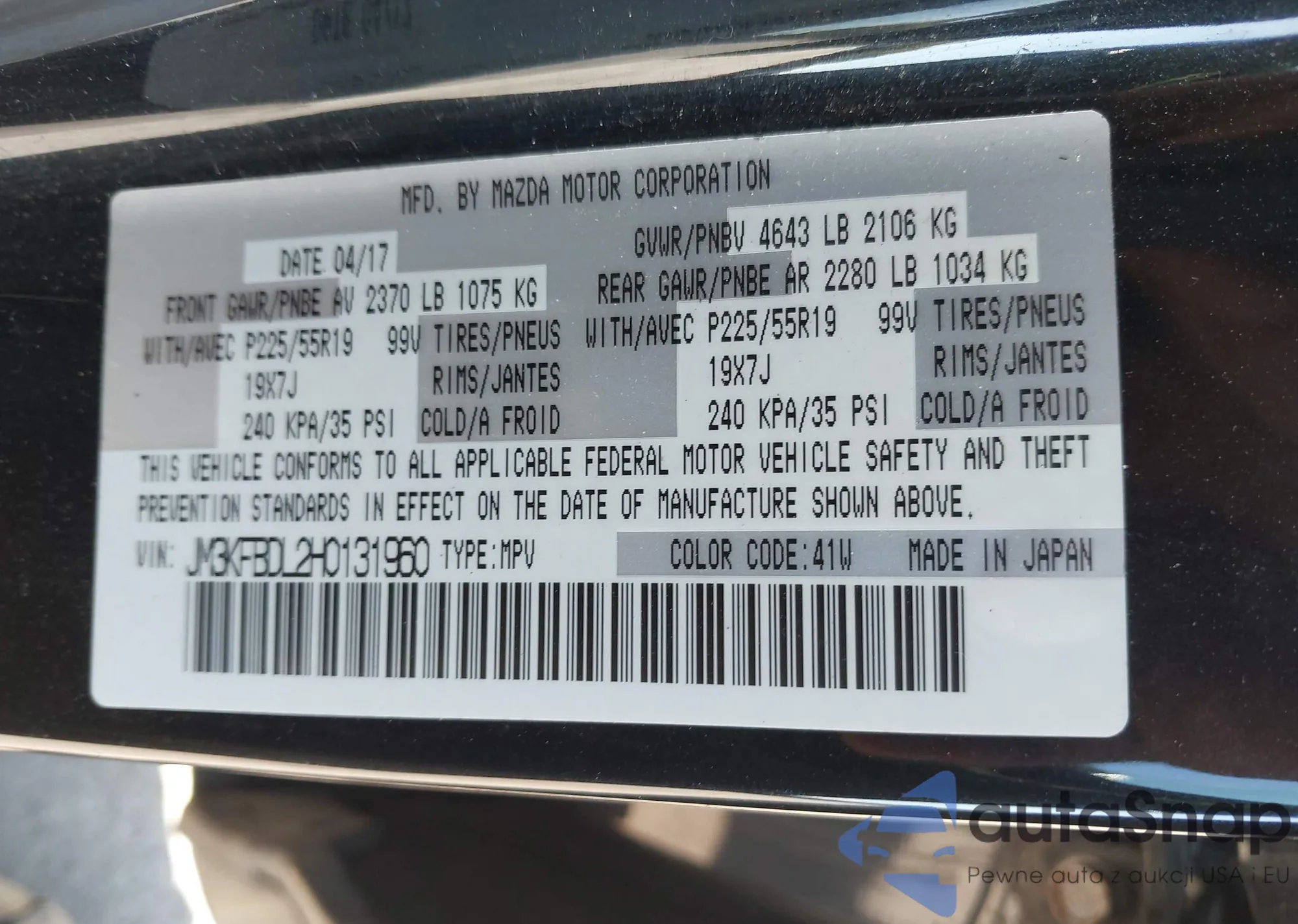 LOT: 43380695 VIN: 3CZRU6H75HM730196
