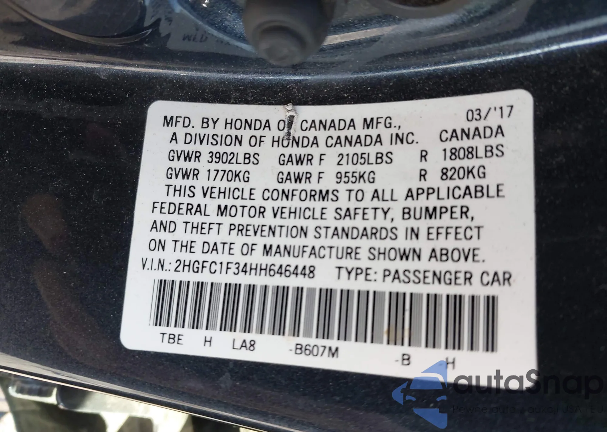 • VIN 2HGFC1F34HH646448