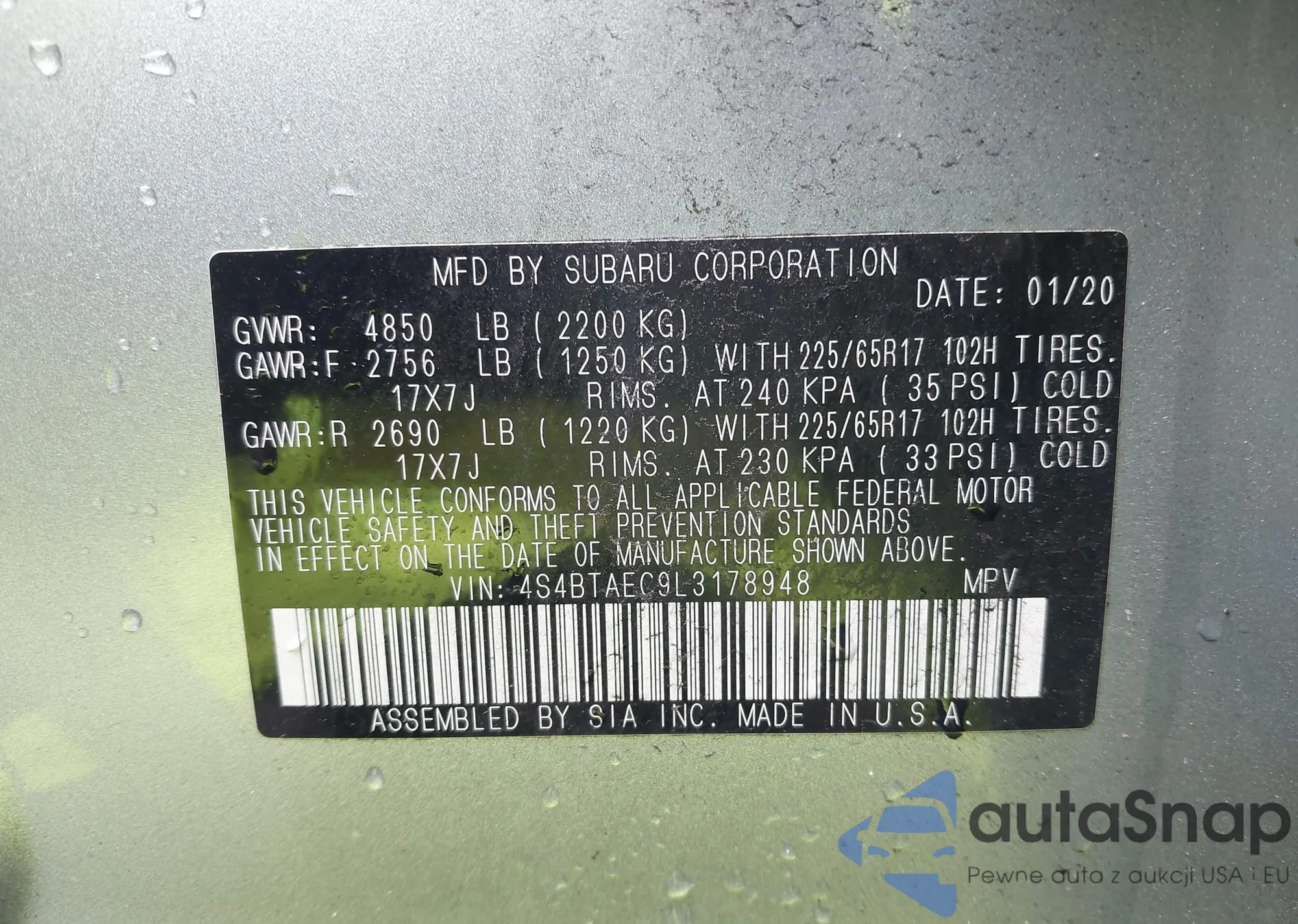 LOT: 43407965 VIN: 4S4BTAEC9L3178948