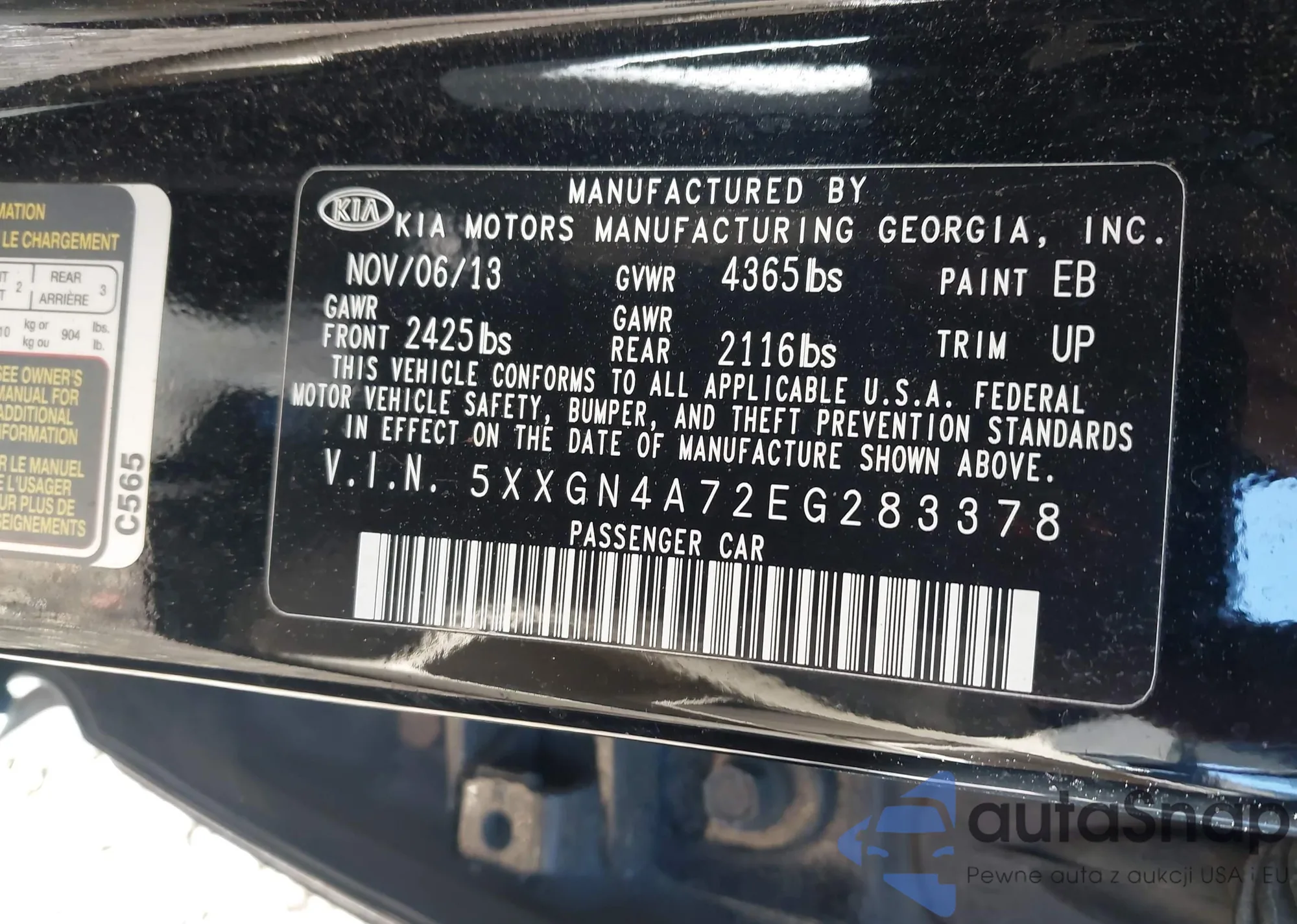 LOT: 43420317 VIN: 5XYKT3A66DG379784