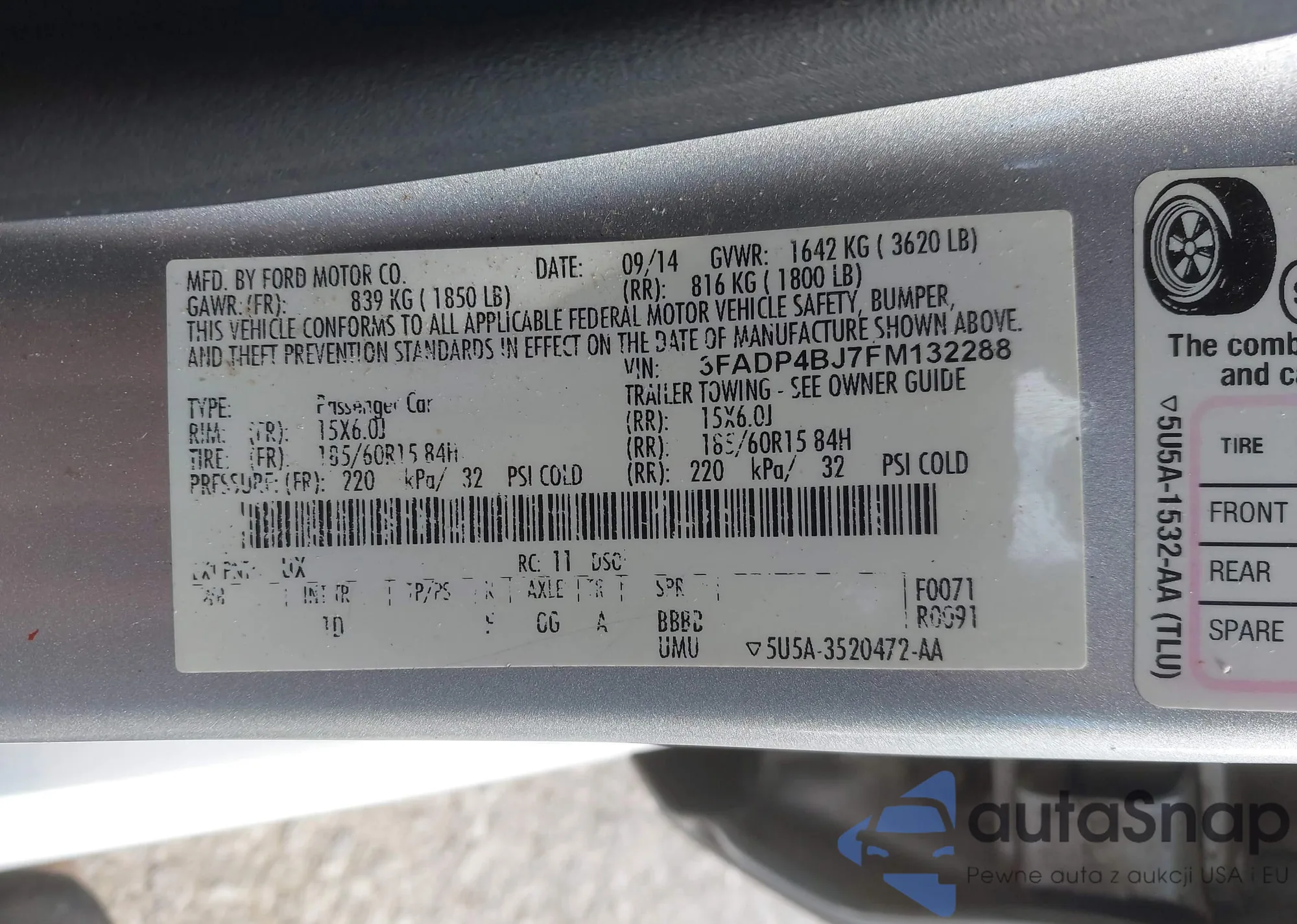 LOT: 43415328 VIN: 3FADP4BJ7FM132288