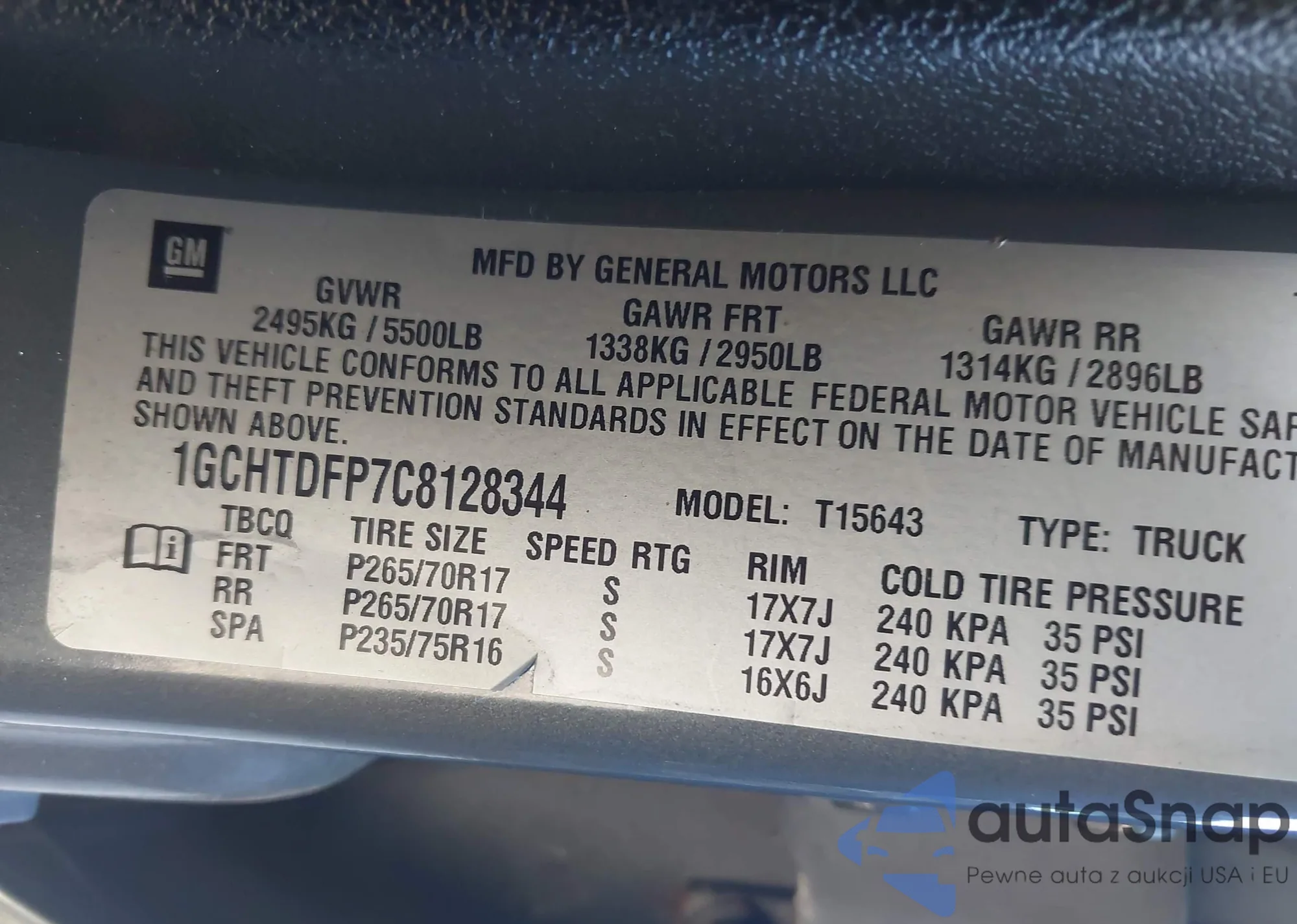LOT: 43417193 VIN: 1GCHTDFP7C8128344