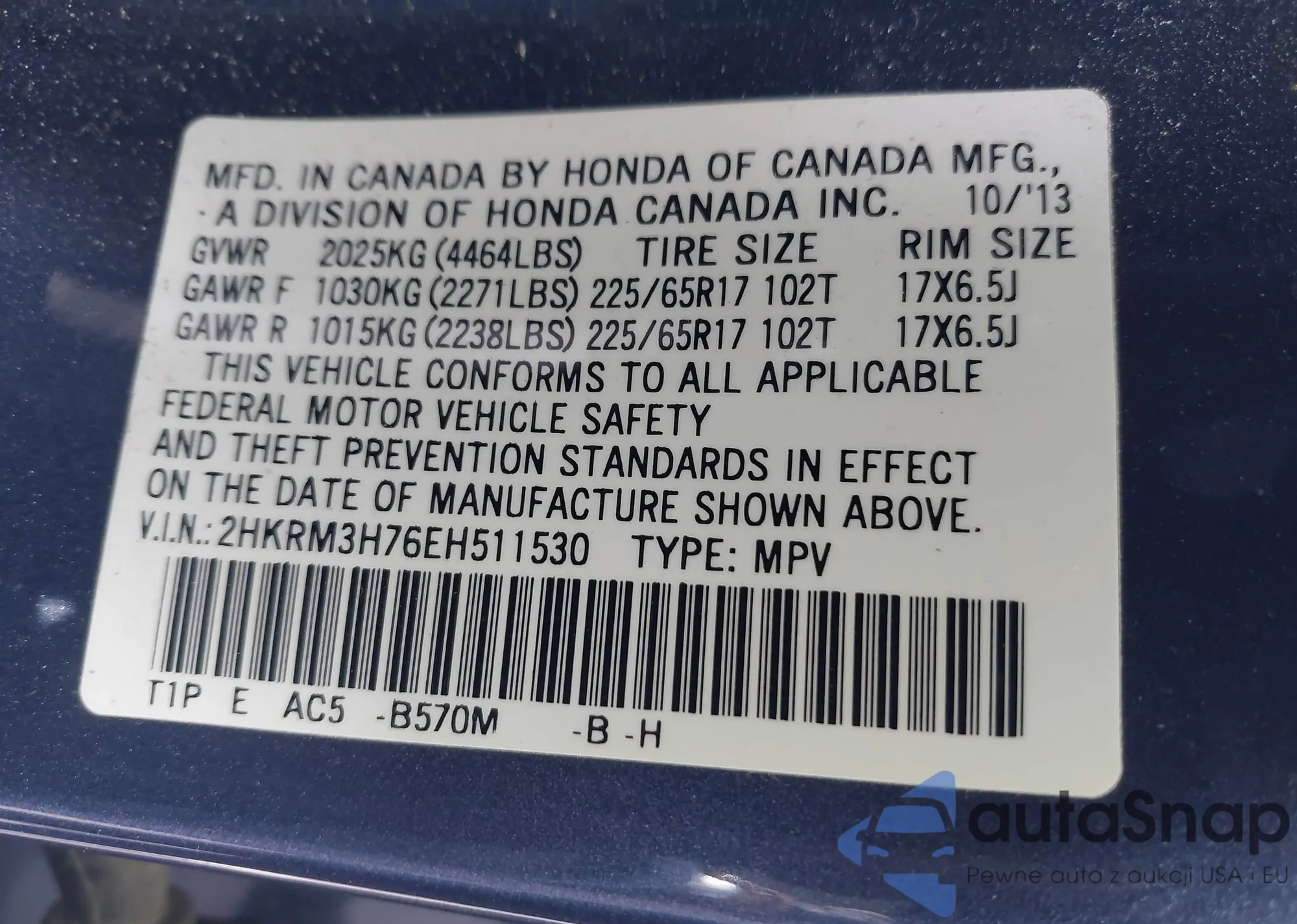 • VIN 3TMCZ5AN6HM071965