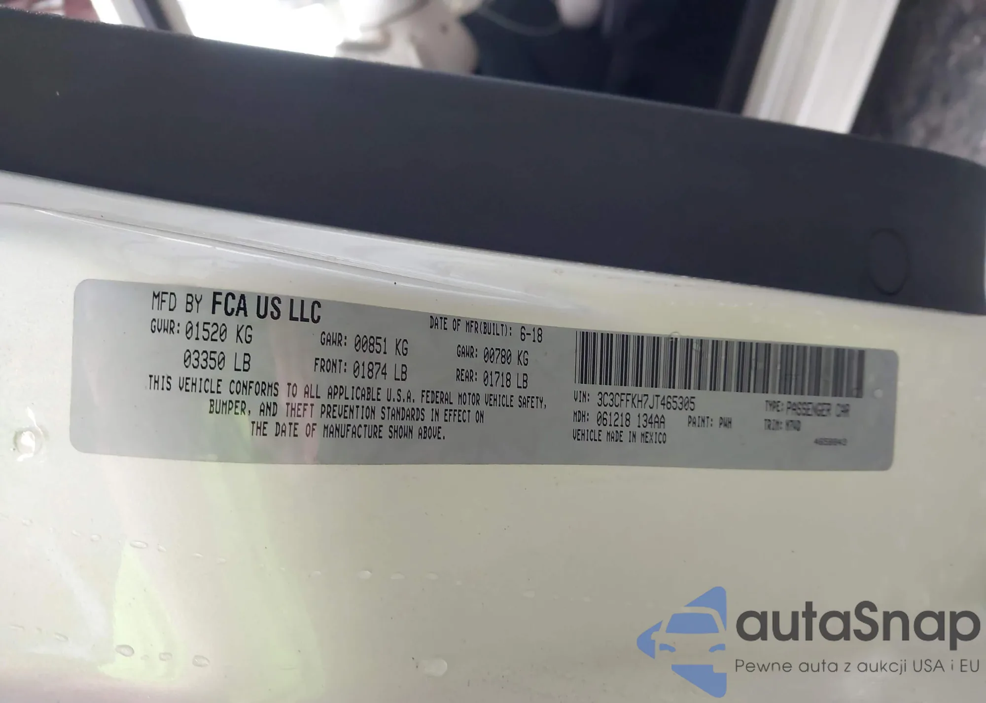 • VIN 3C3CFFKH7JT465305