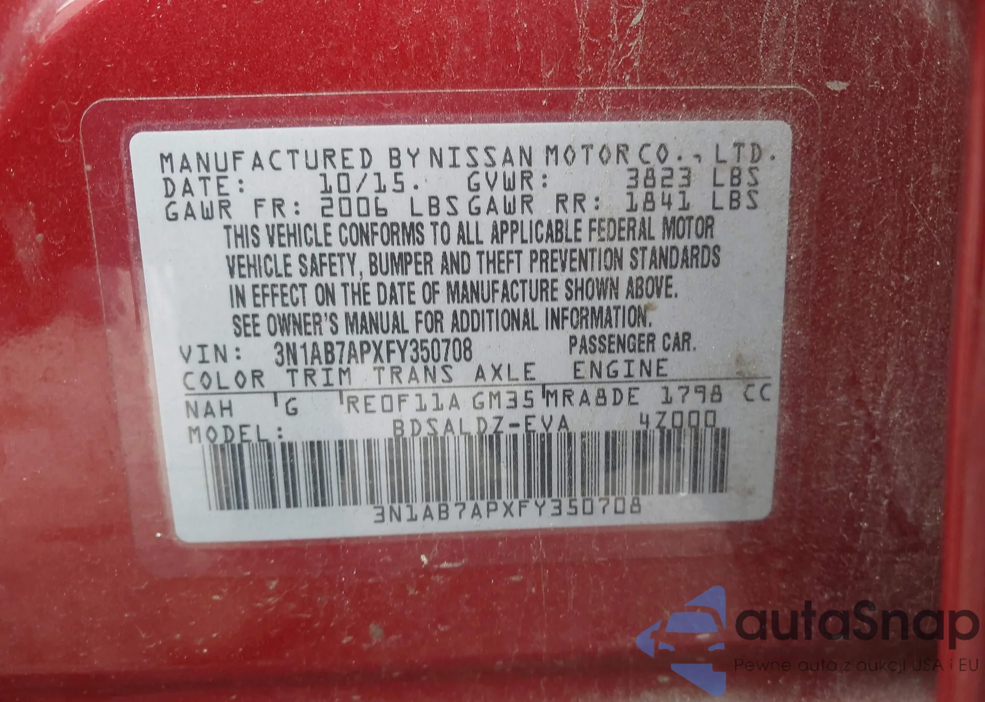 • VIN 3N1AB7APXFY350708