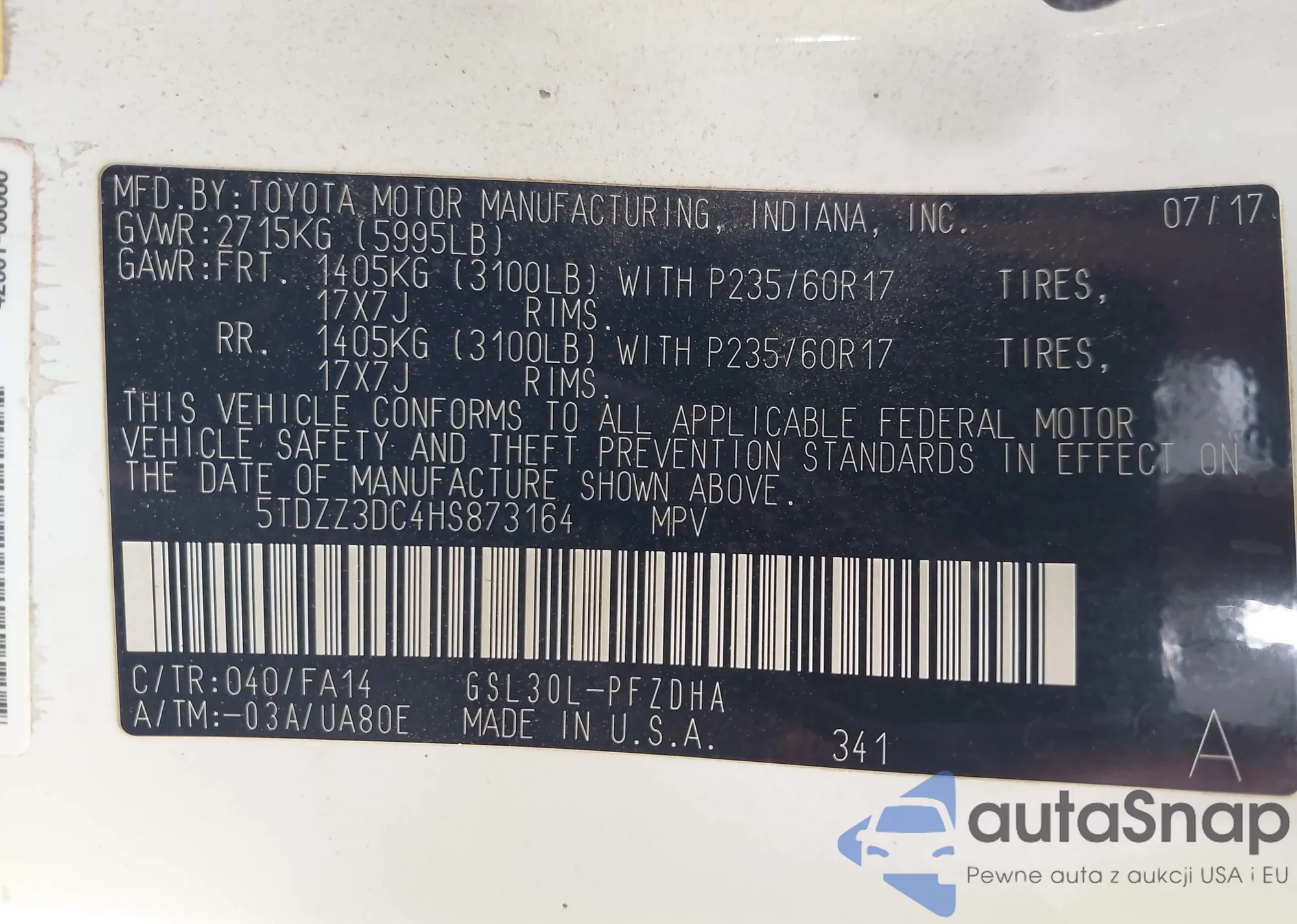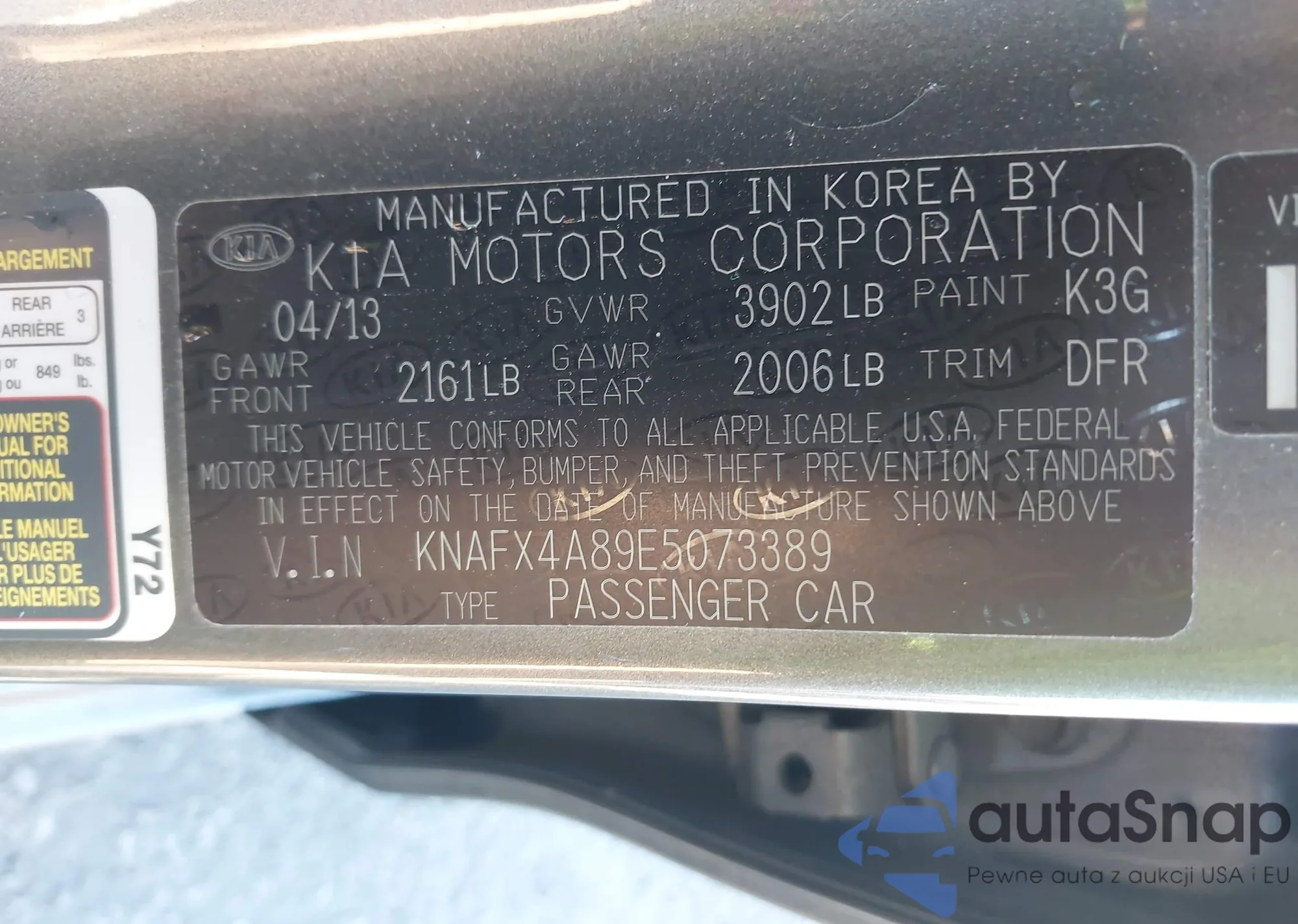 • VIN KNAFX4A89E5073389