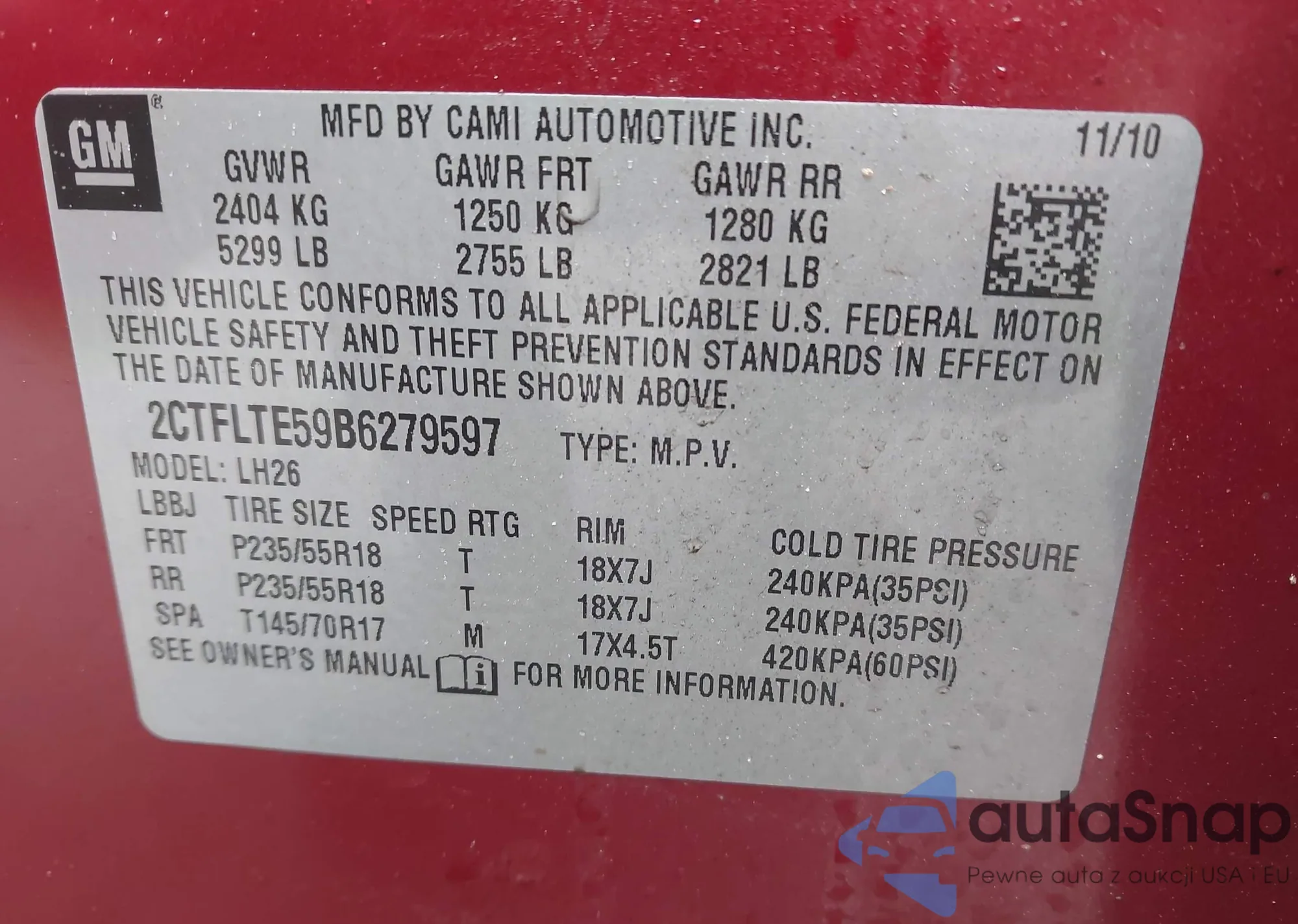 LOT: 43383464 VIN: 2CTFLTE59B6279597