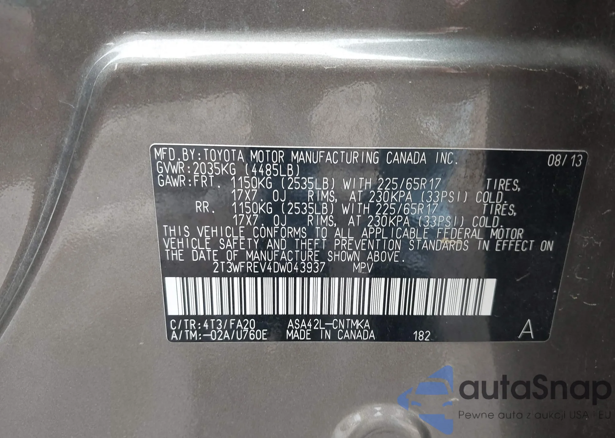 • VIN 2T3C1RFV6MW153226