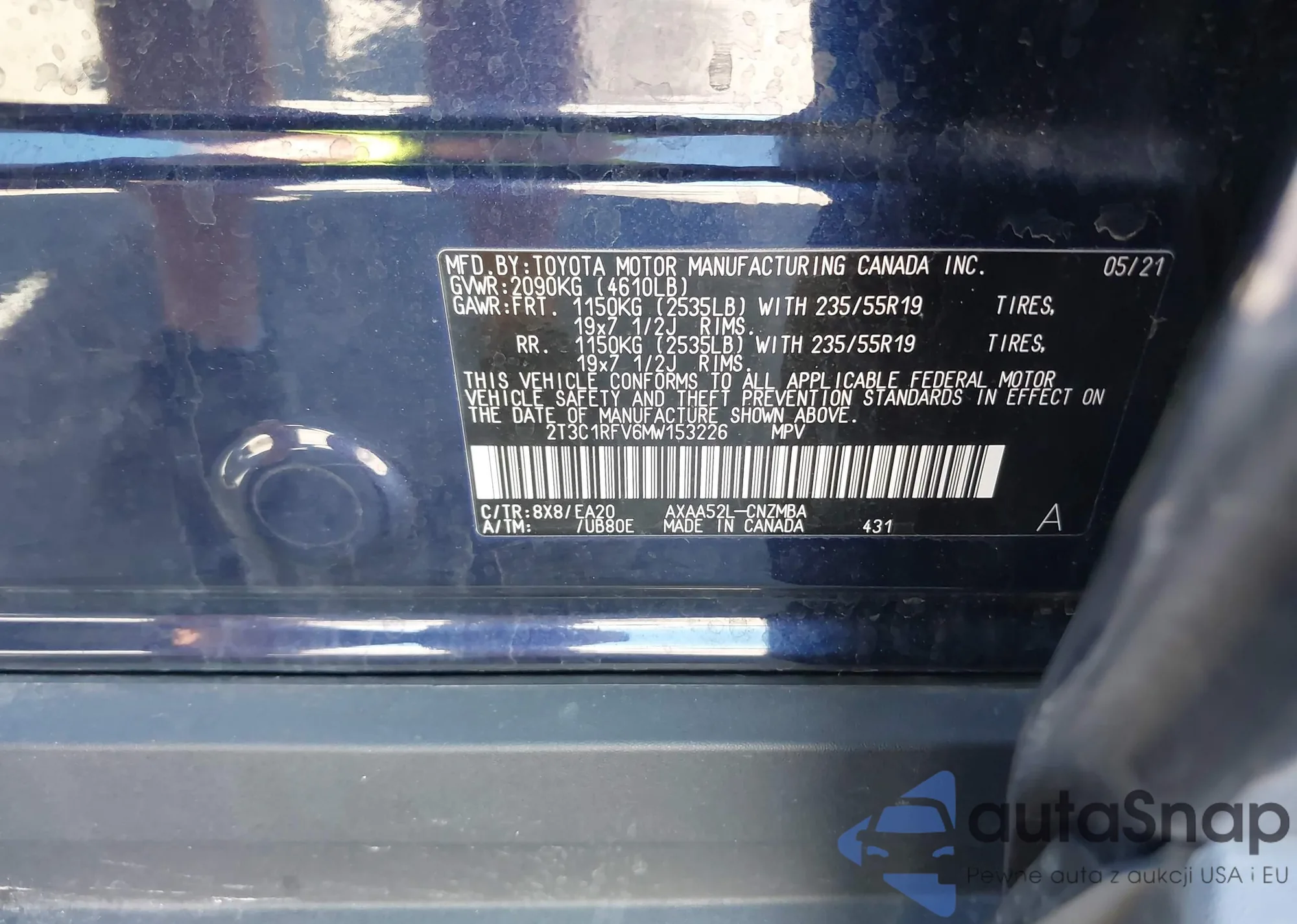LOT: 43414661 VIN: 2T3C1RFV6MW153226