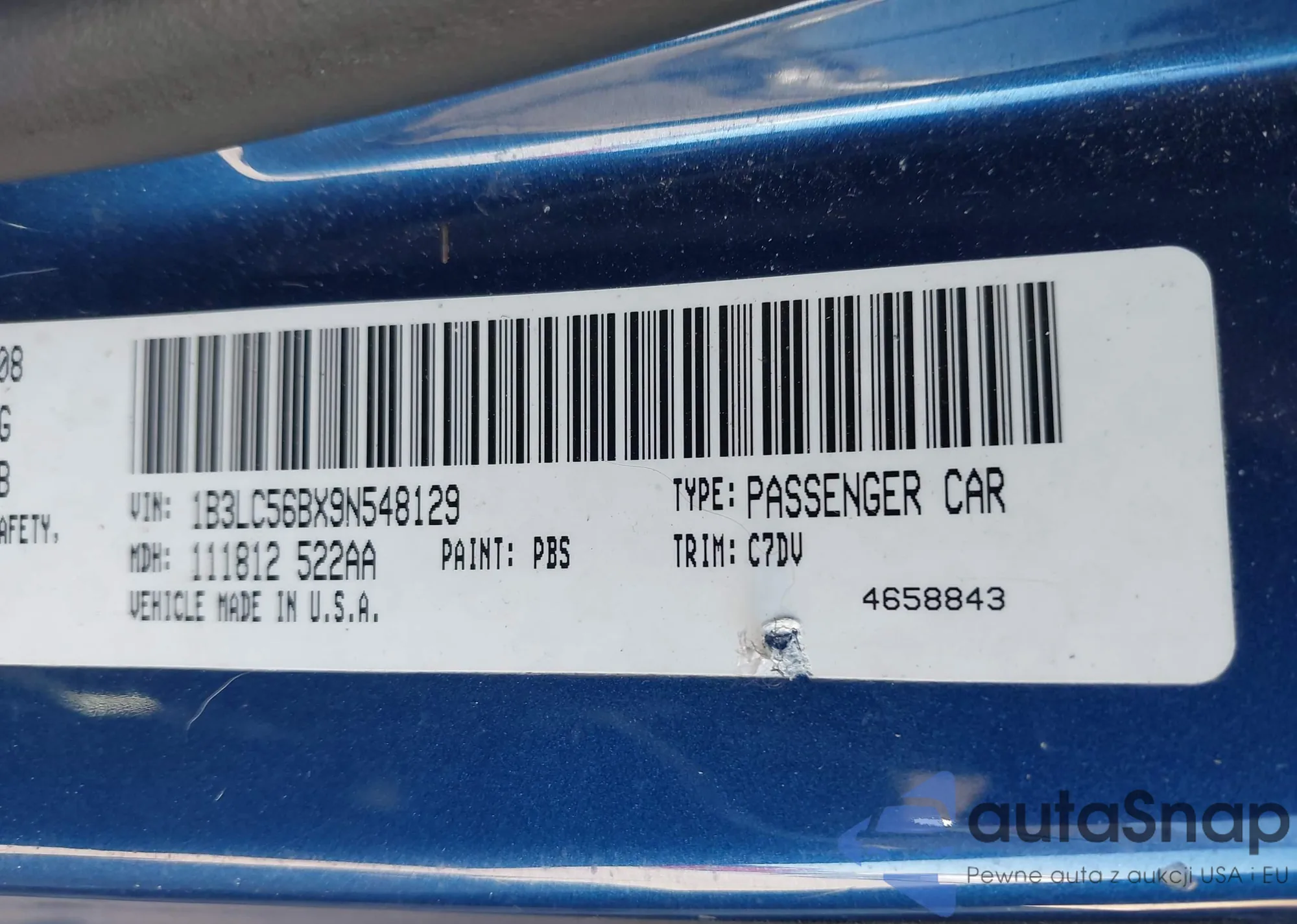 LOT: 43424658 VIN: 1B3LC56BX9N548129