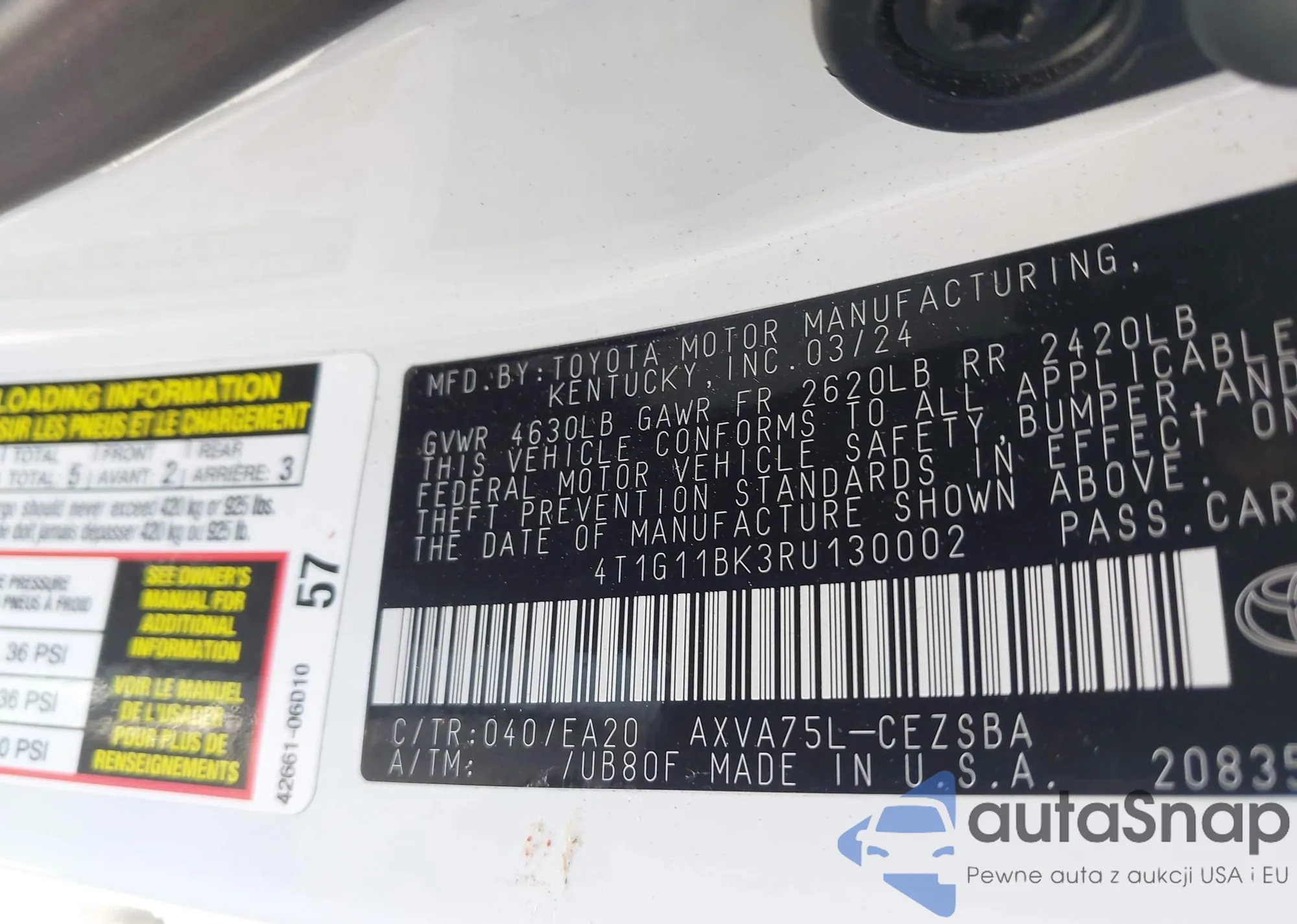 • VIN 4T1BF1FK6CU568414