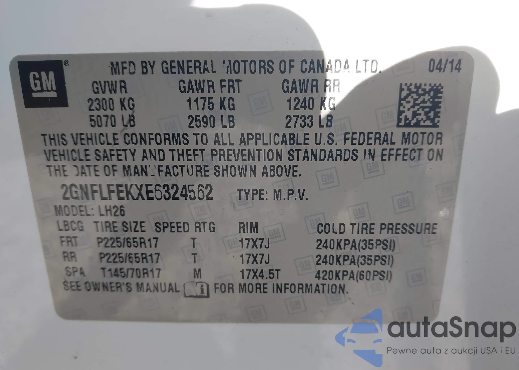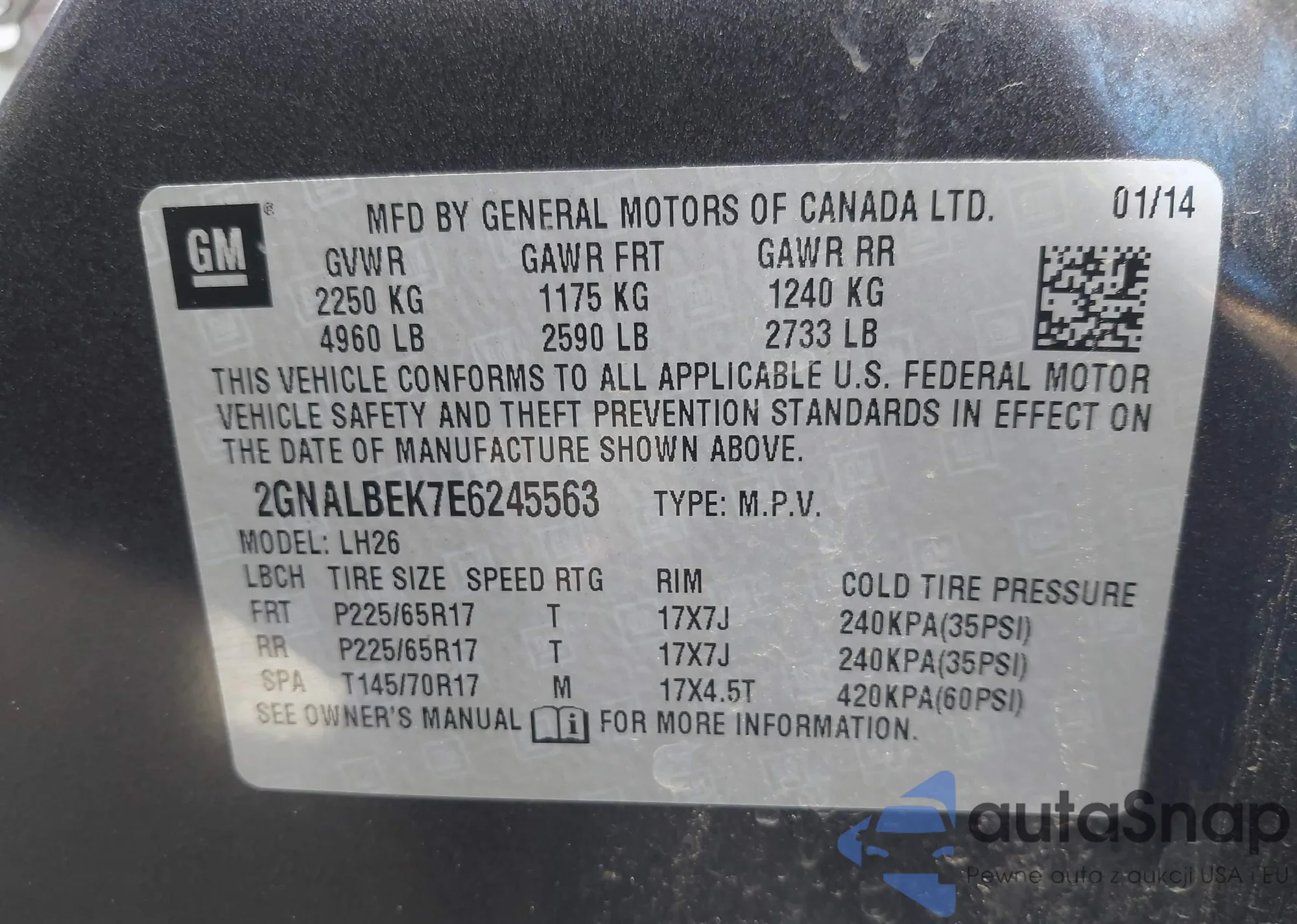 • VIN 2GNALBEK7E6245563