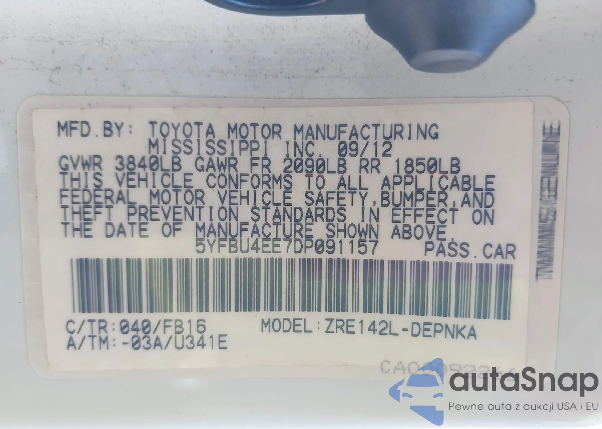 • VIN 4T1BF1FK3FU931708