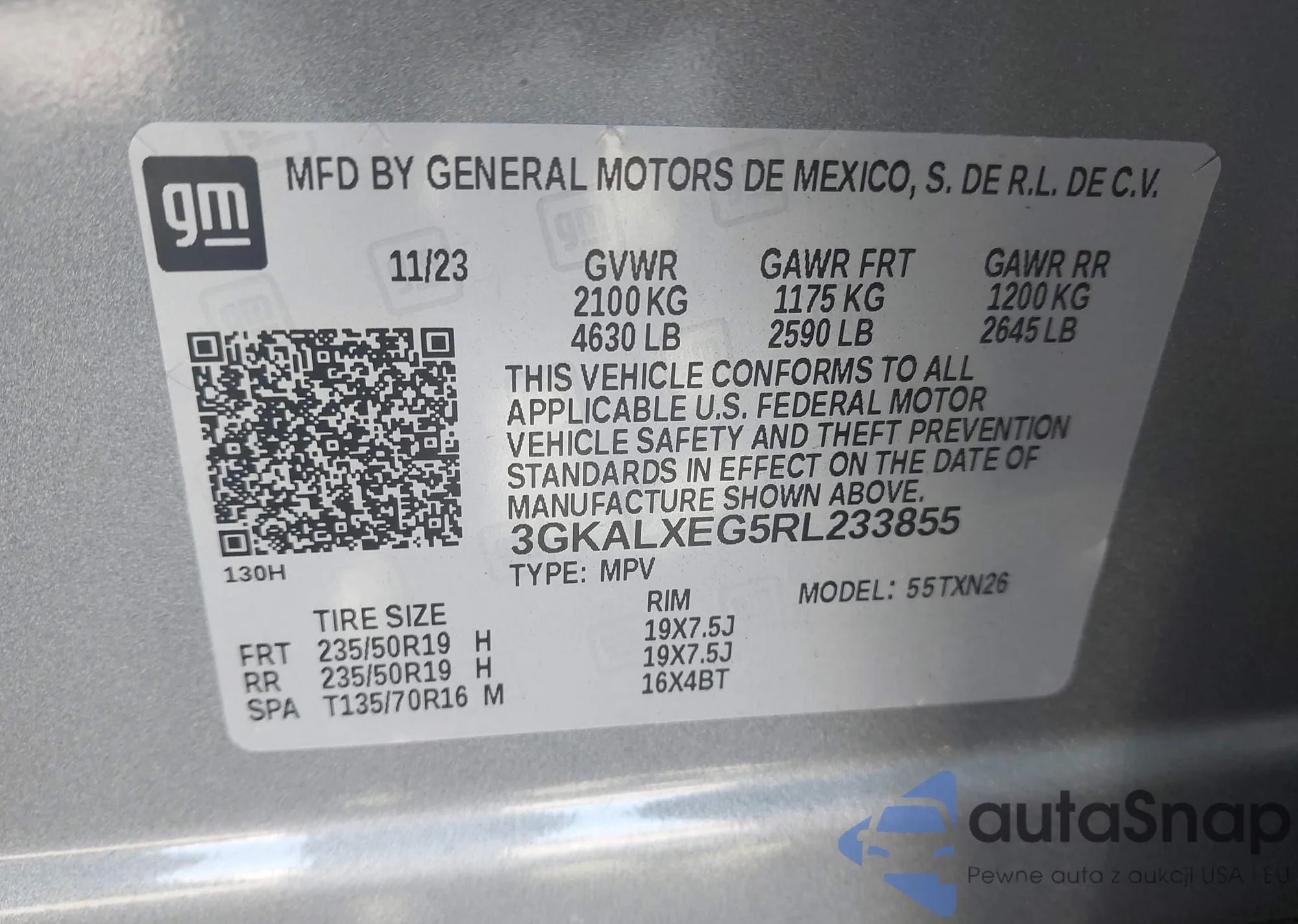 LOT: 43170118 VIN: 3GKALXEG5RL233855