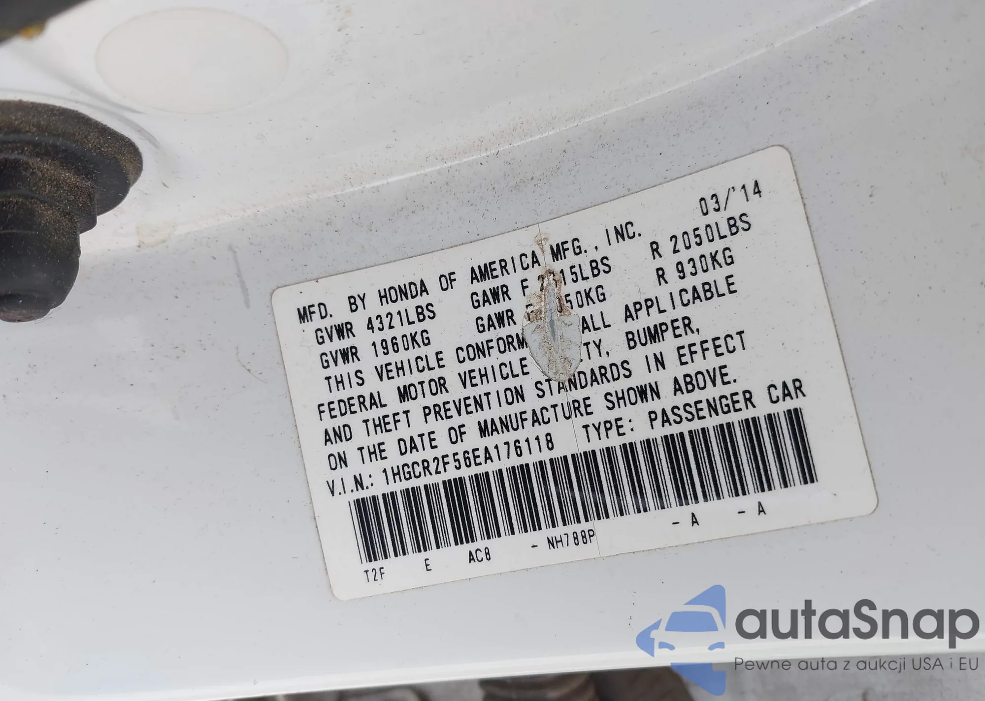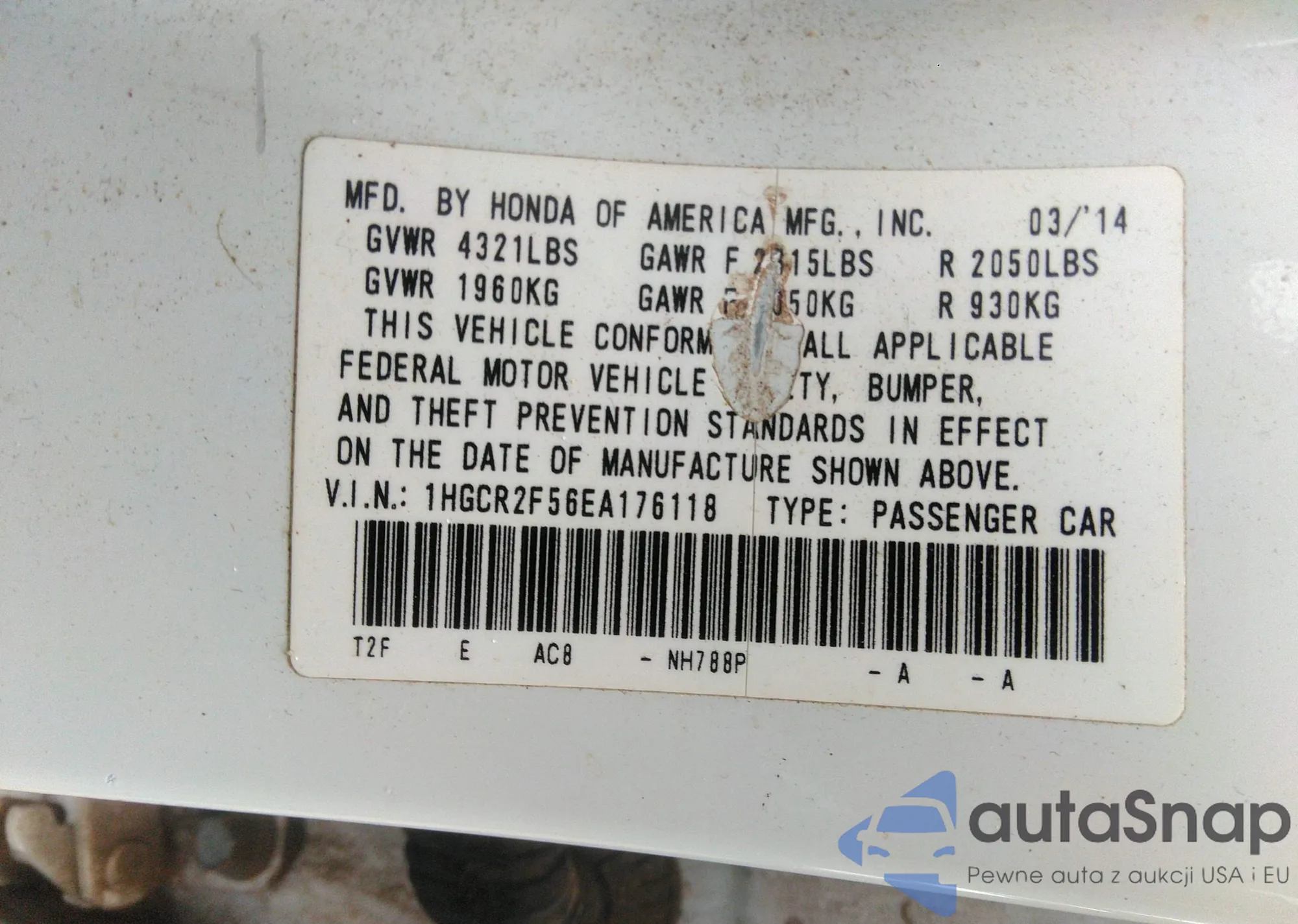 • VIN 1HGCR2F56EA176118