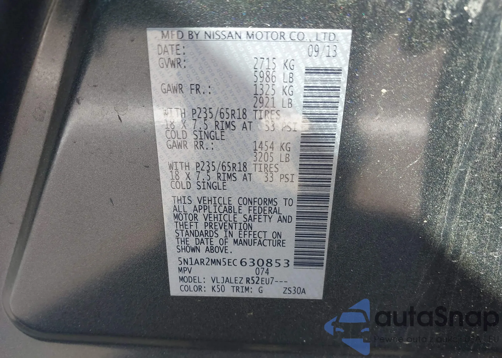 LOT: 43514477 VIN: 5N1AR2MN5EC630853