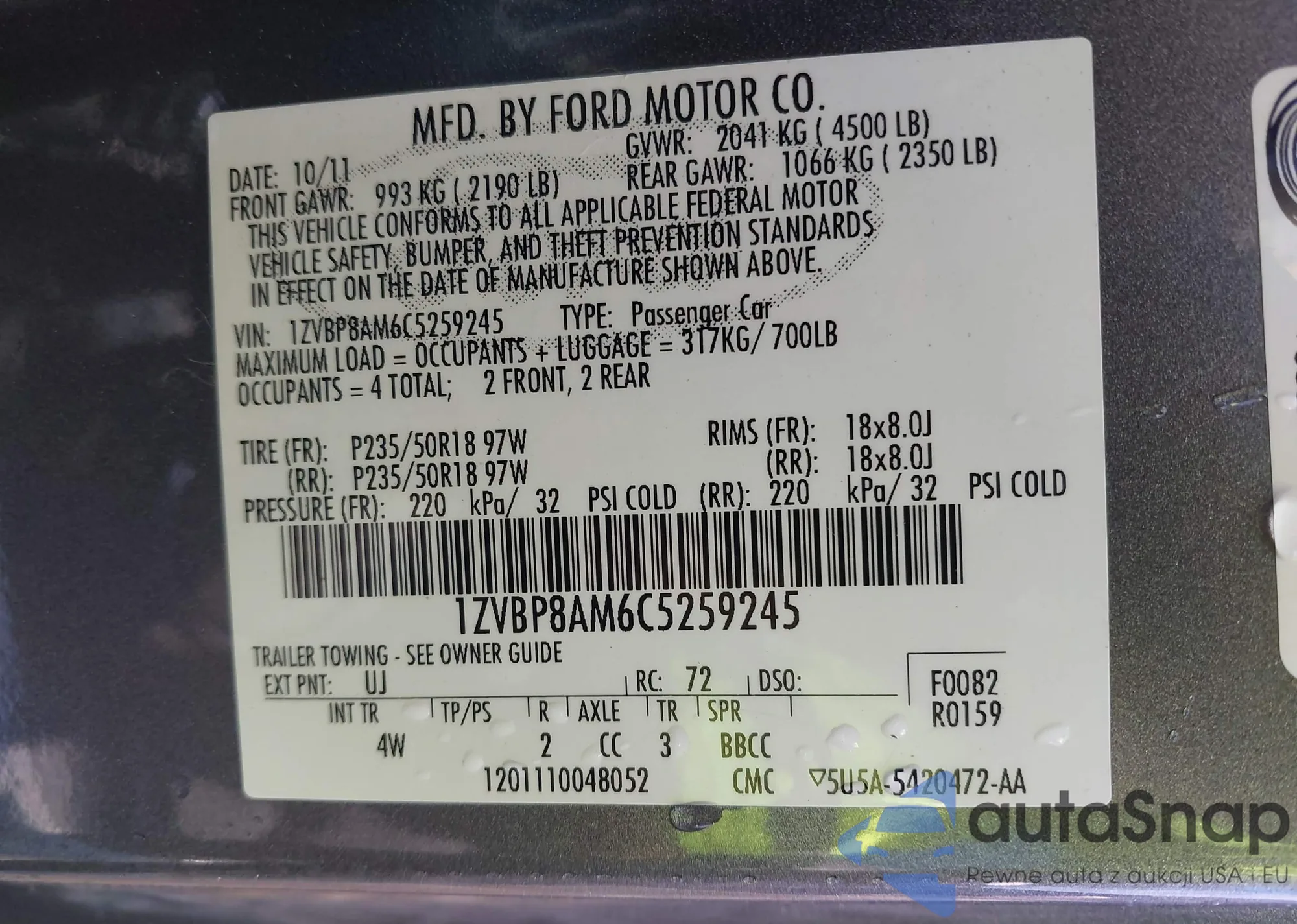 • VIN 1ZVHT80NX75278239