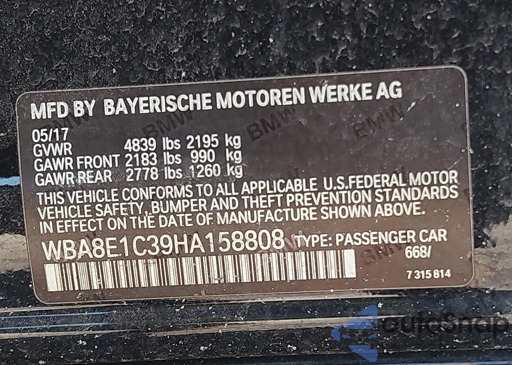 • VIN WBA8E1C39HA158808