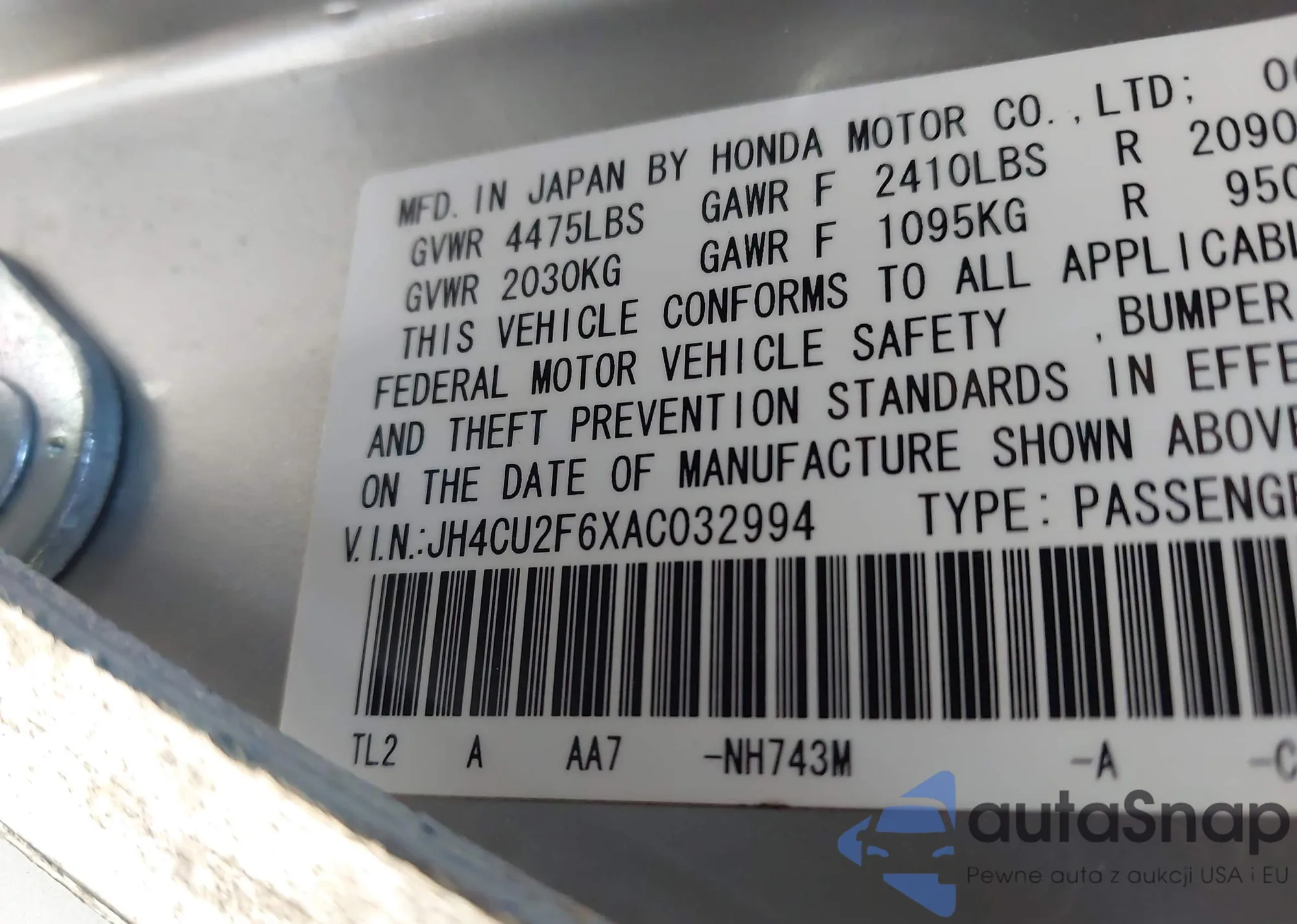 LOT: 43498375 VIN: 1HGCD5636RA190878