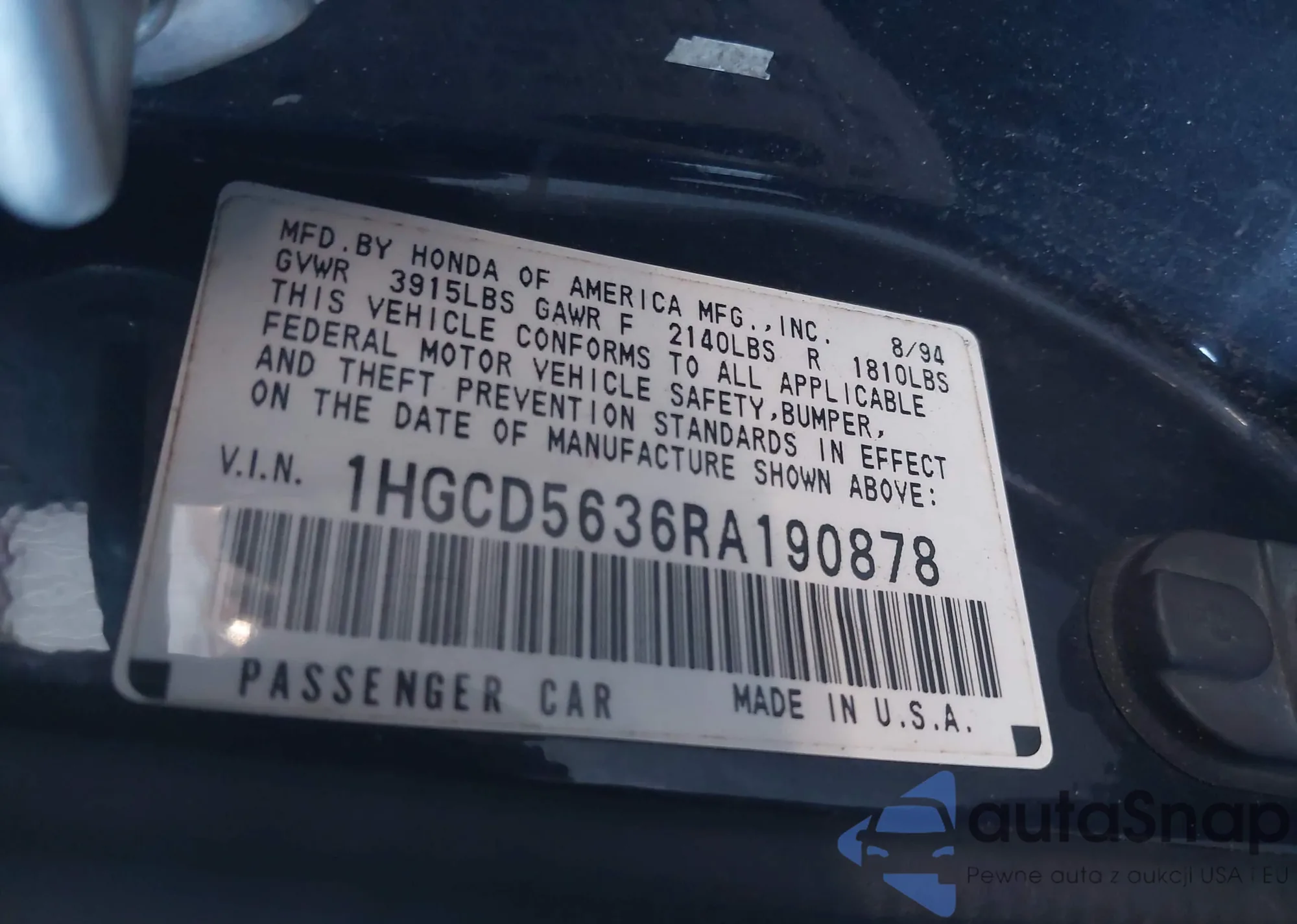 • VIN 1HGCD5636RA190878