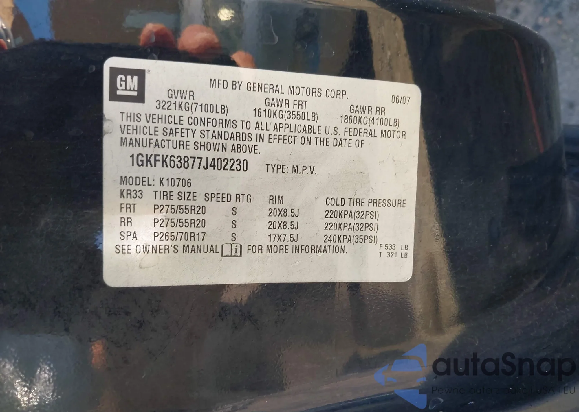 • VIN 1GKFK63877J402230