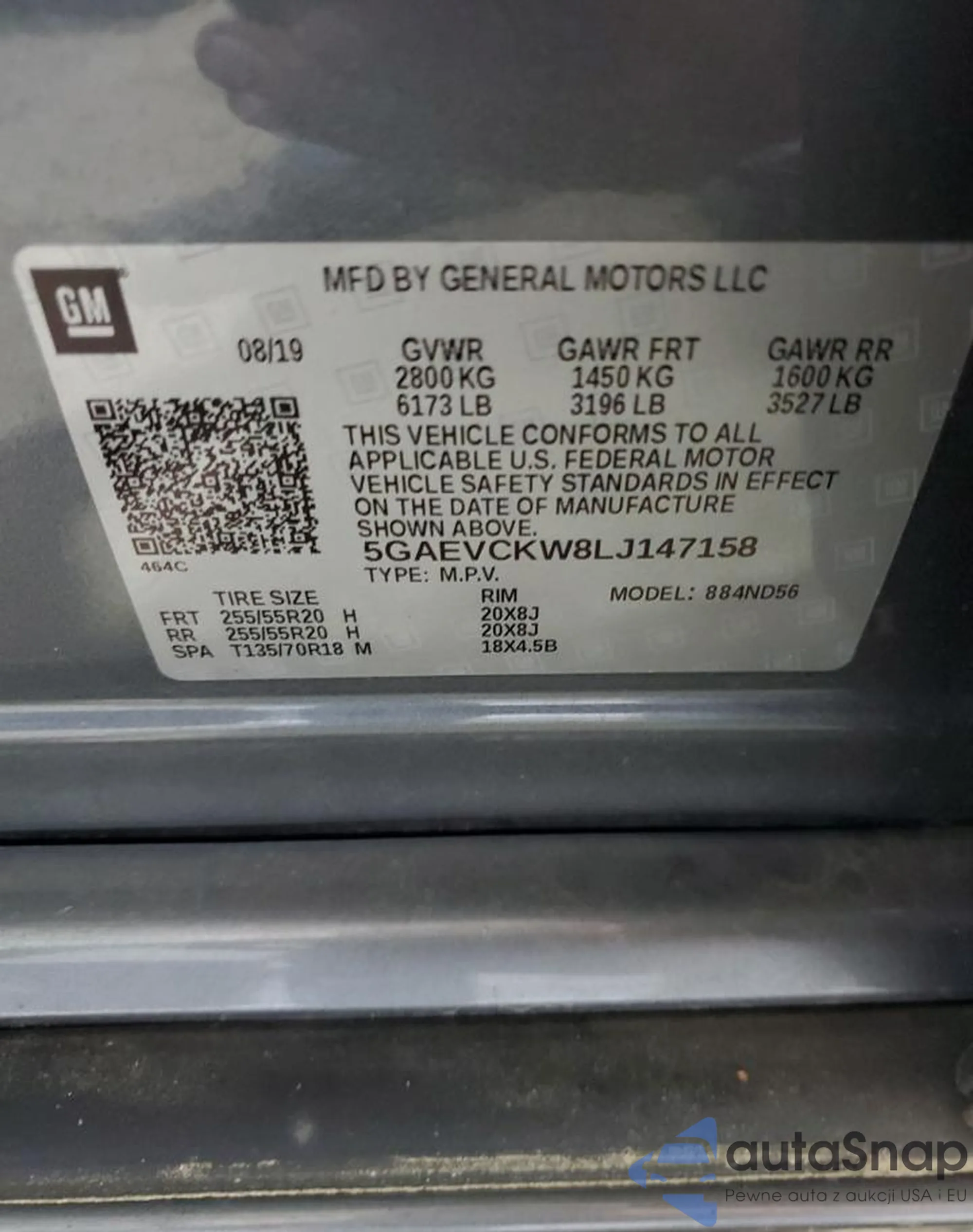 • VIN 5GAEVCKW8LJ147158