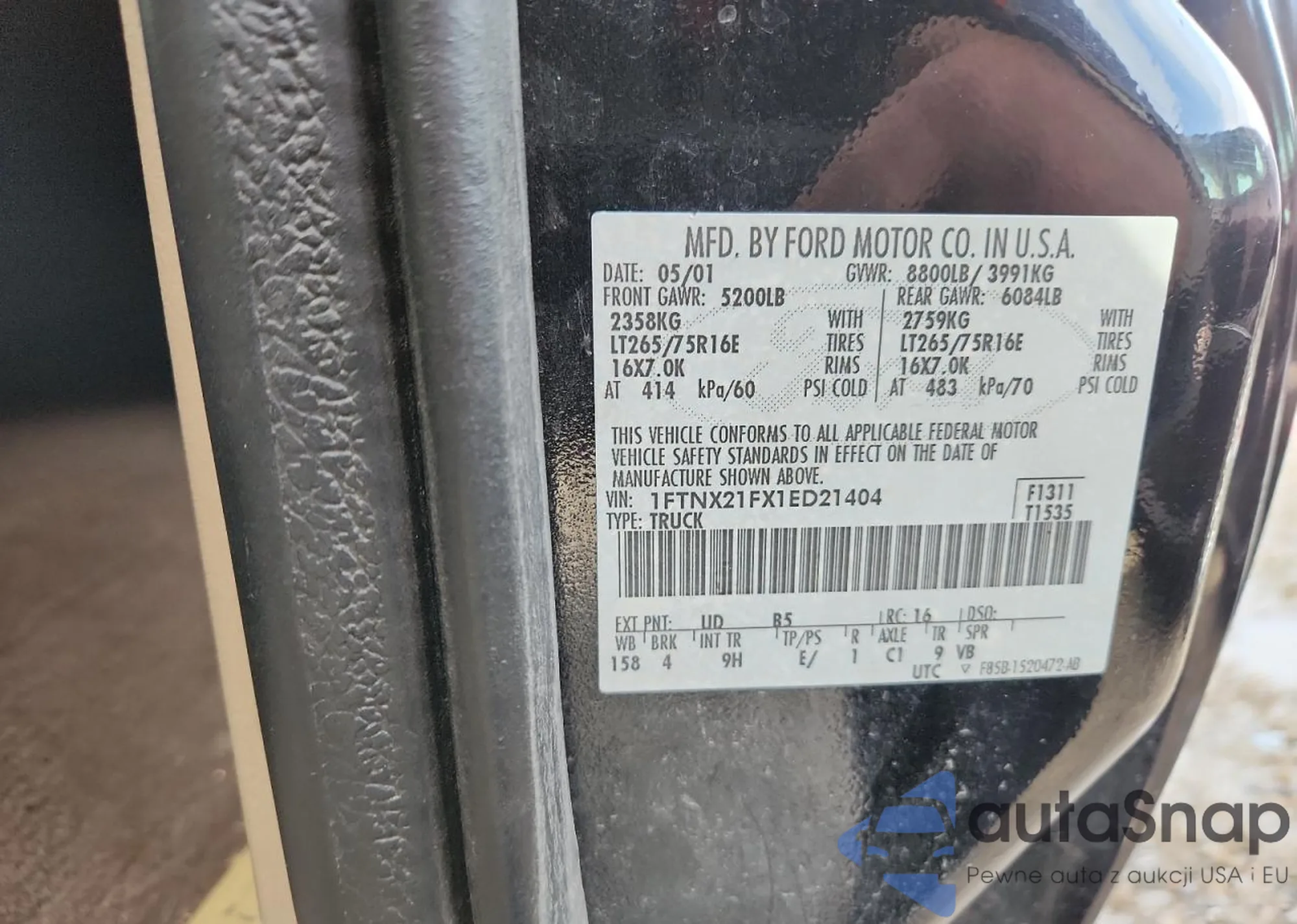 LOT: 81836755 VIN: 1FTNF20L21EB97218