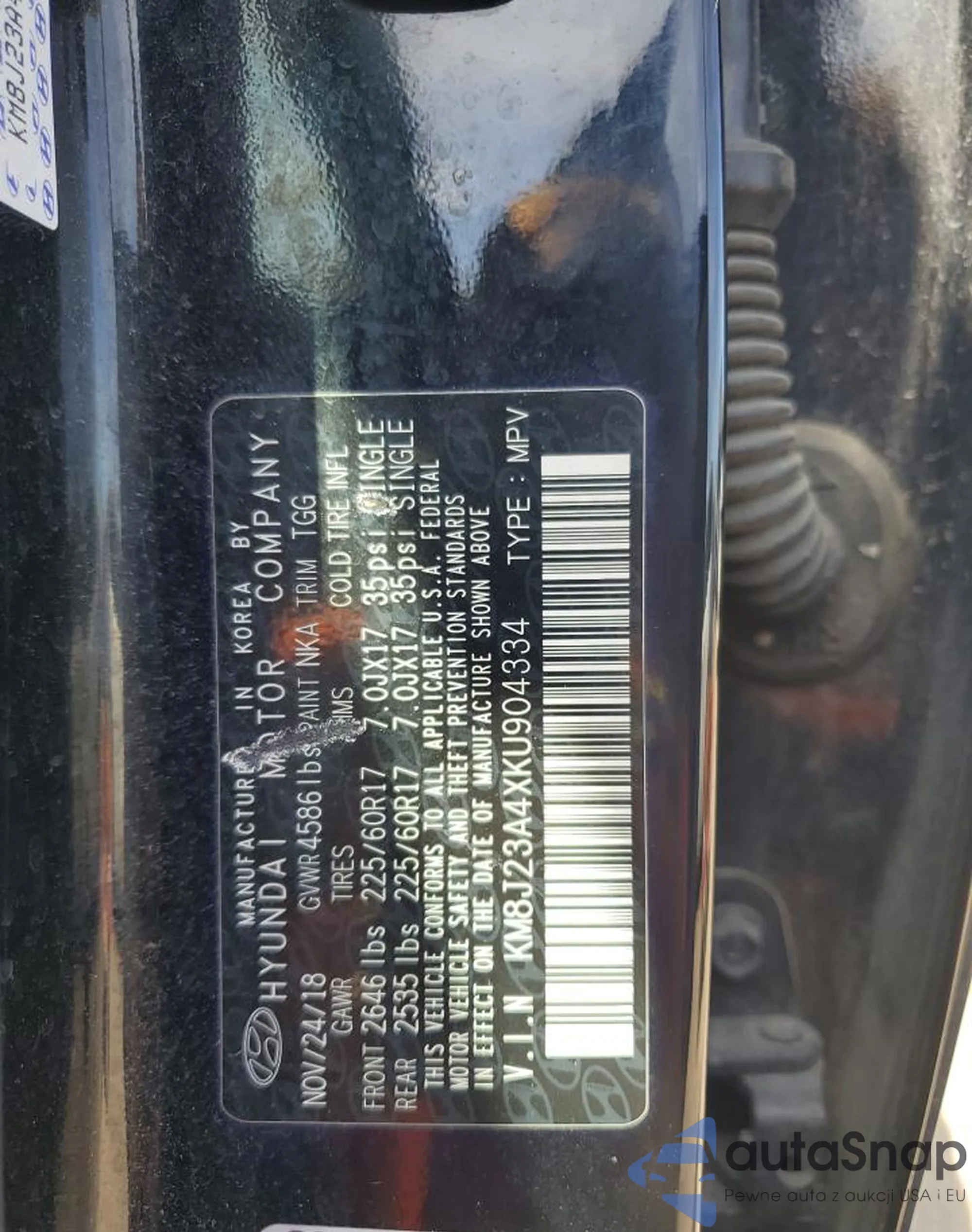 • VIN KM8J23A4XKU904334