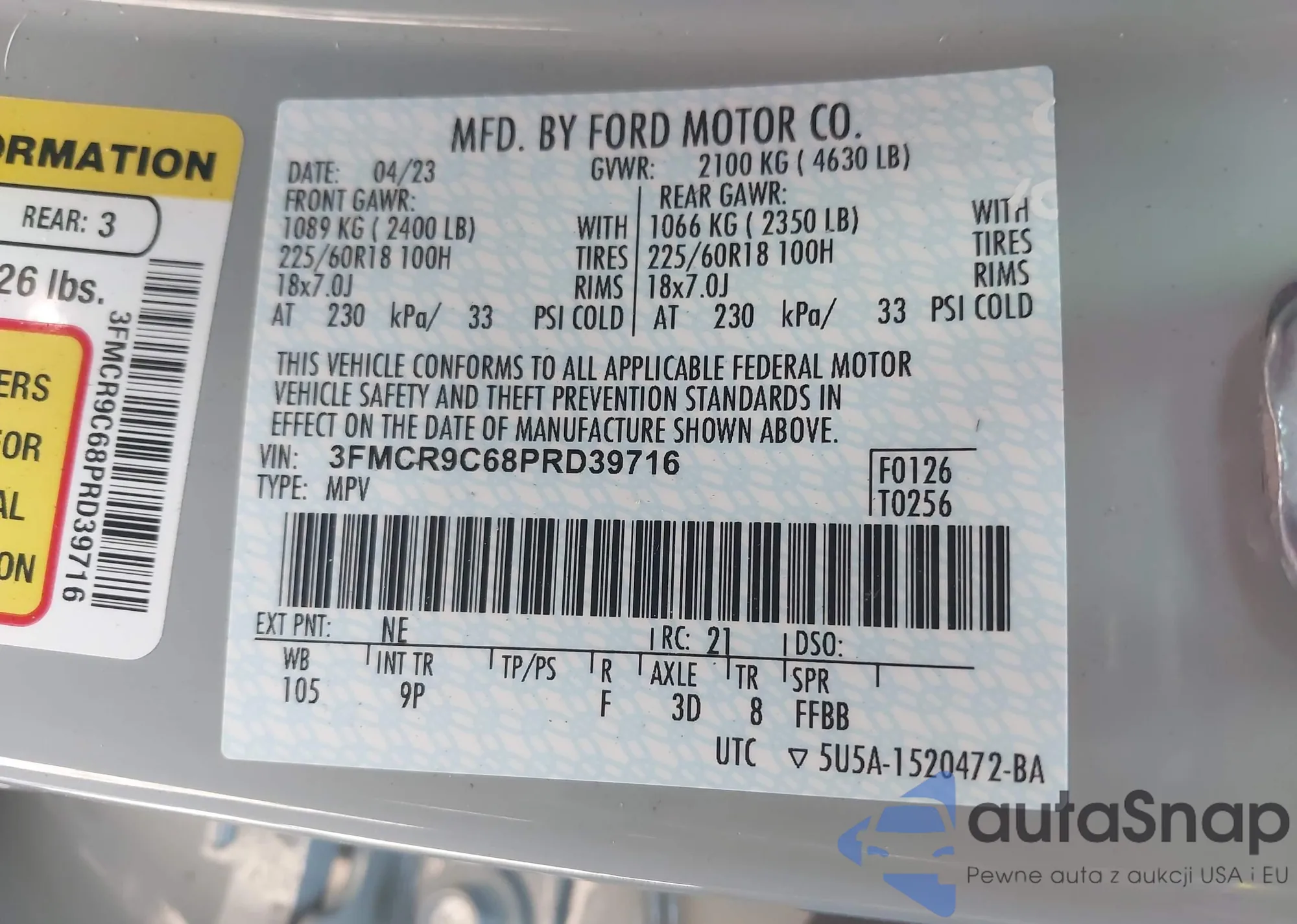 • VIN 3FMCR9C68PRD39716