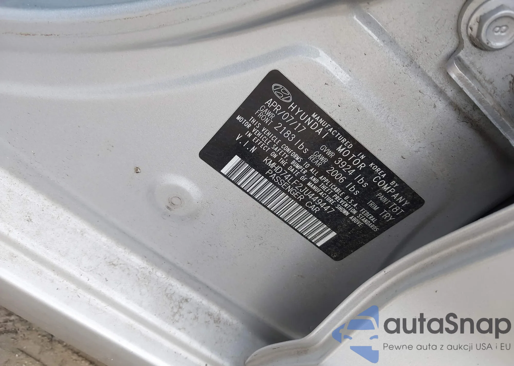 LOT: 43417829 VIN: KMHD35LH2GU266464