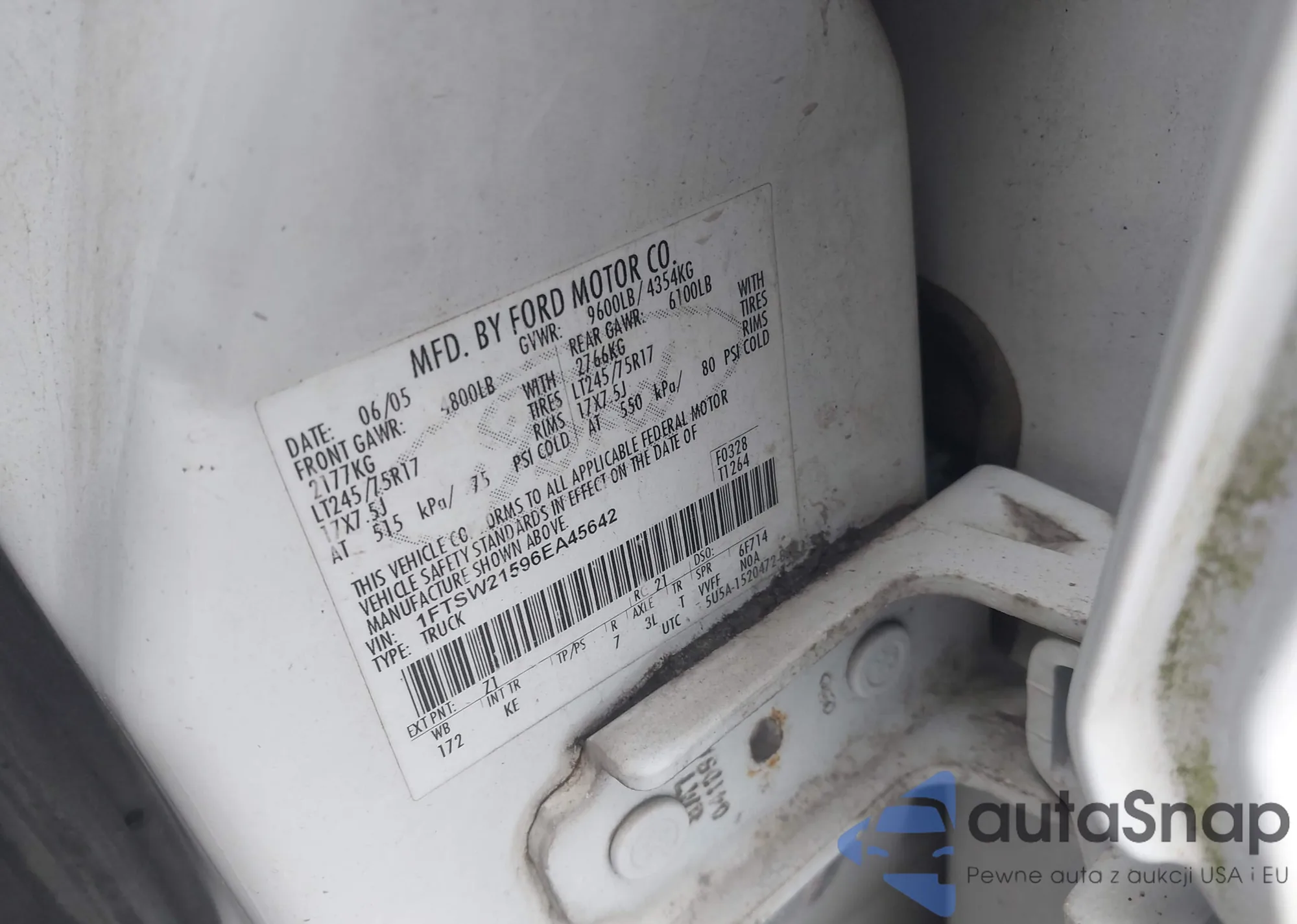 LOT: 43425480 VIN: 1FTSW21596EA45642