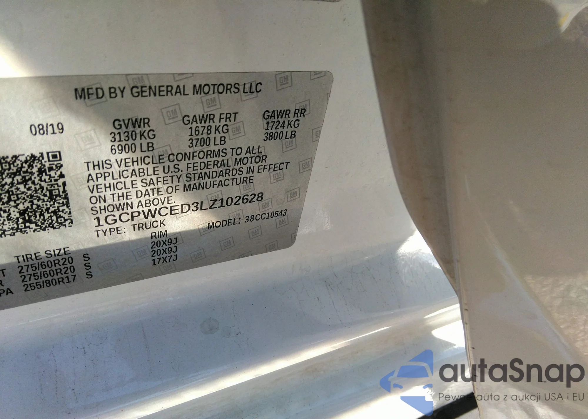 LOT: 43482969 VIN: 1GCPWCED3LZ102628