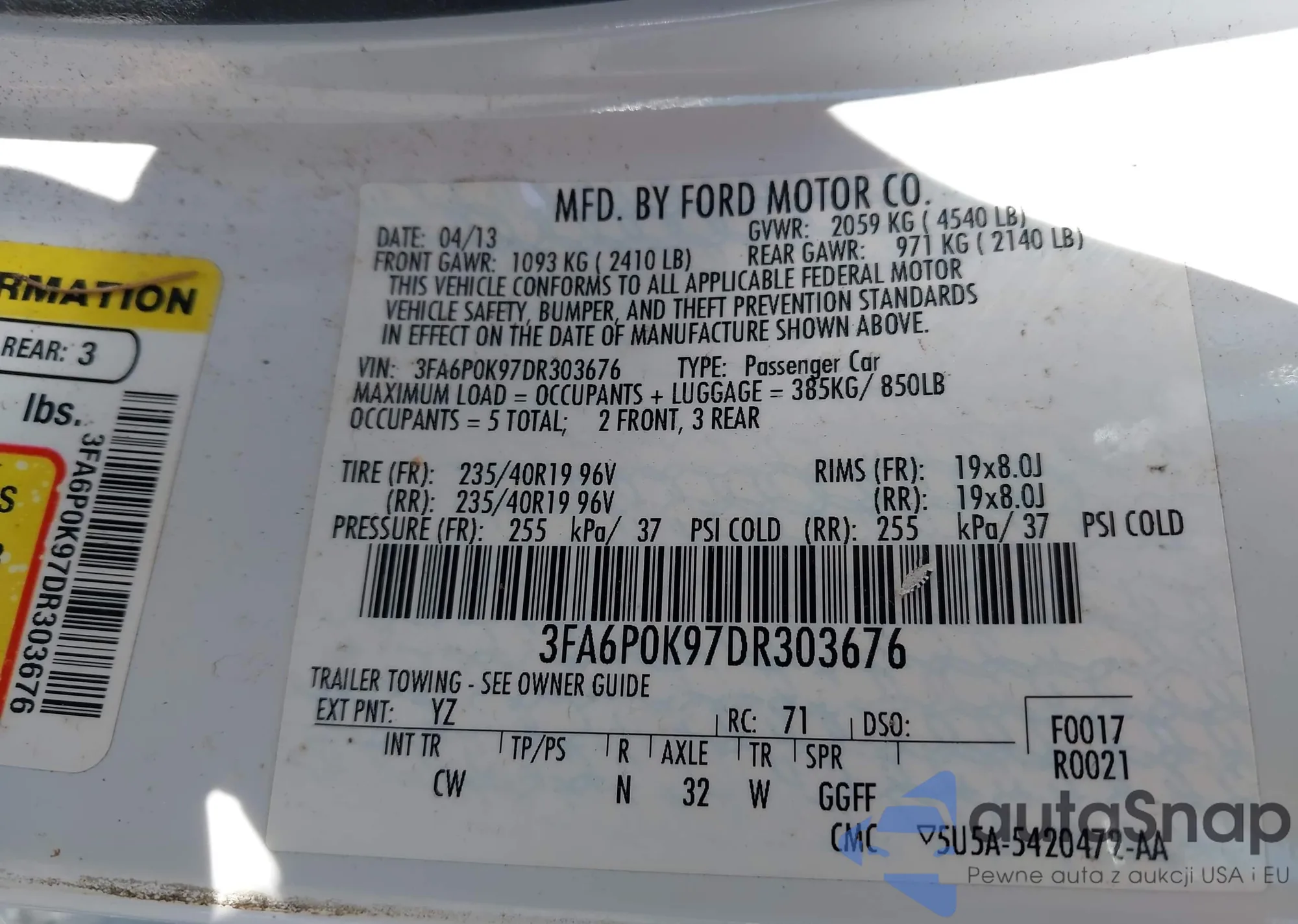 LOT: 42387352 VIN: 3FA6P0K97DR303676