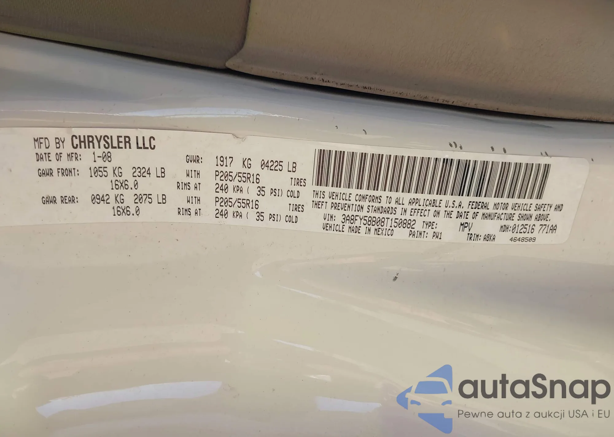 • VIN 3A8FY58B08T150882