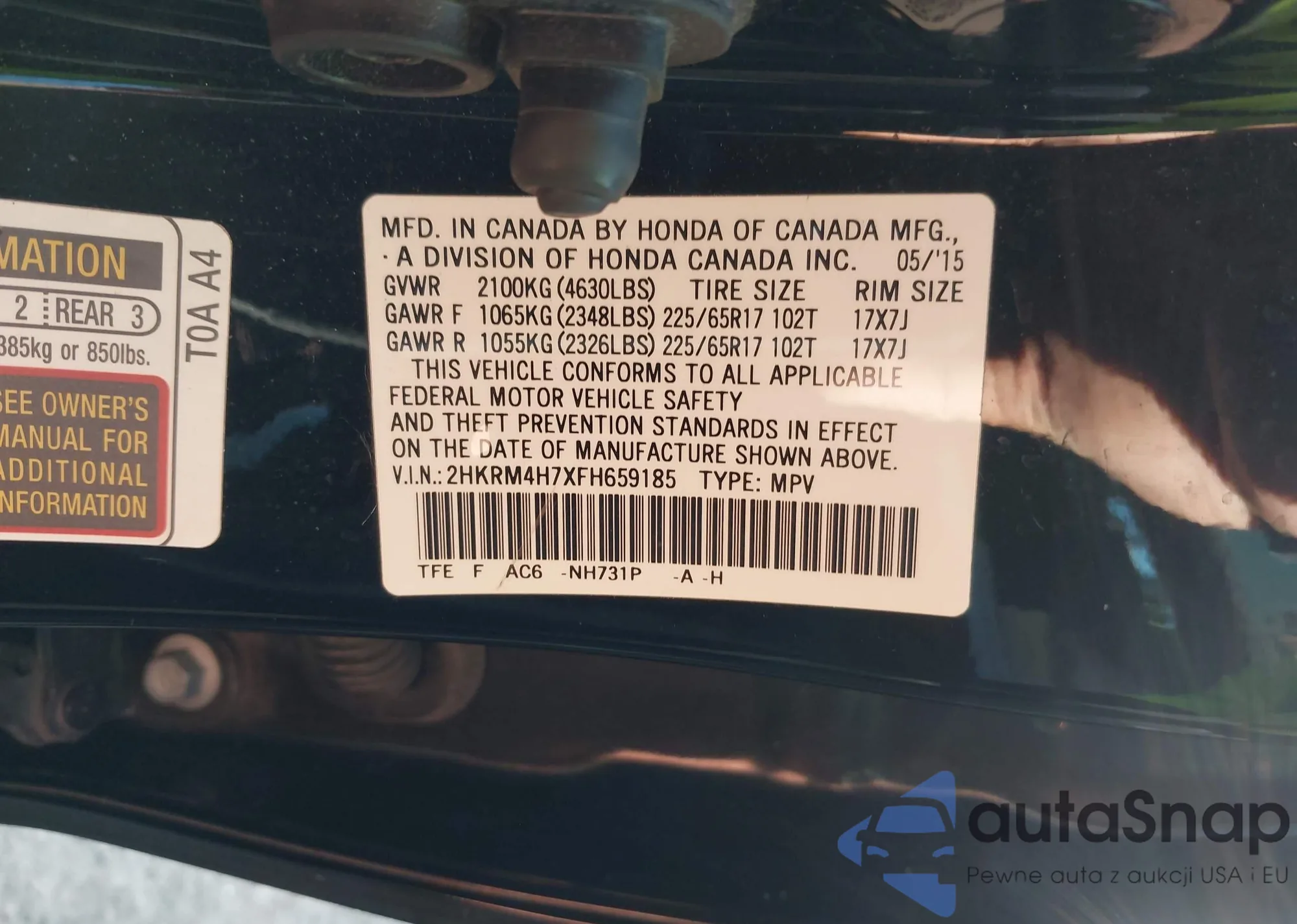 • VIN 5FNRL6H75KB019568