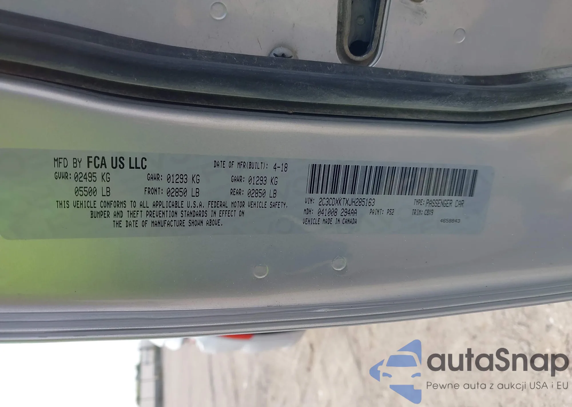 • VIN 2C3CDXKTXJH285163