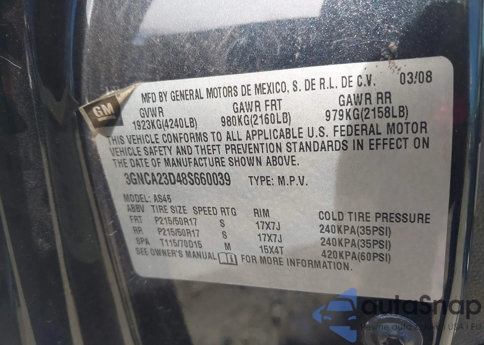 LOT: 43296408 VIN: 3GNCA23D48S660039