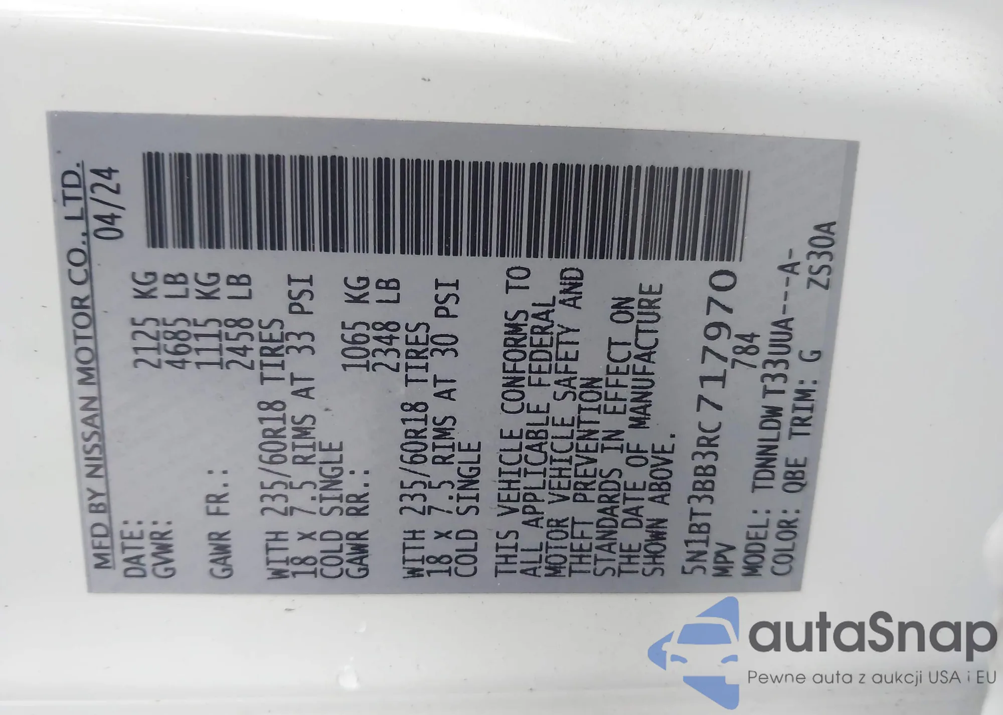 LOT: 43349567 VIN: 5N1BT3BB3RC717970