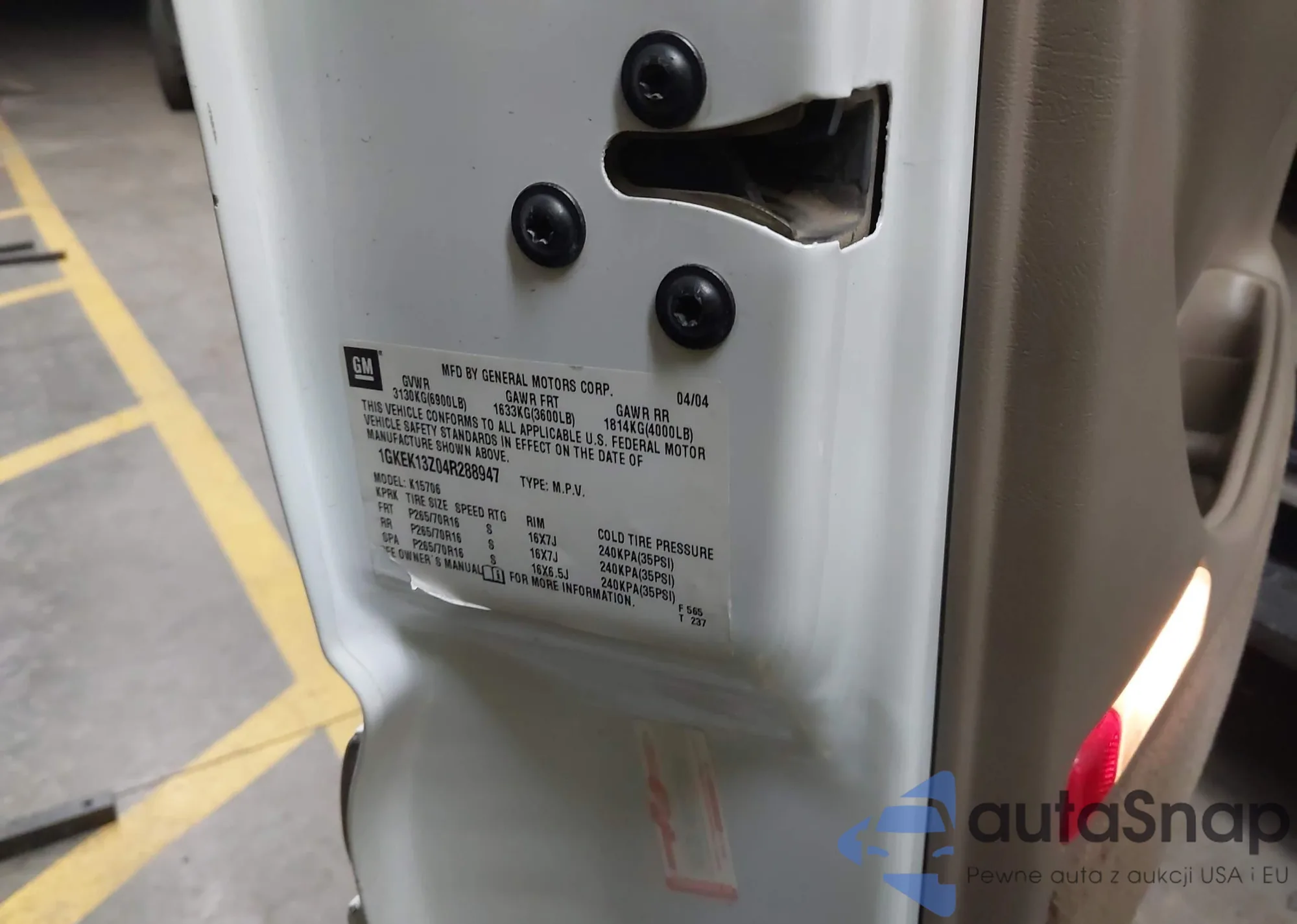 • VIN 1GKEK13Z04R288947