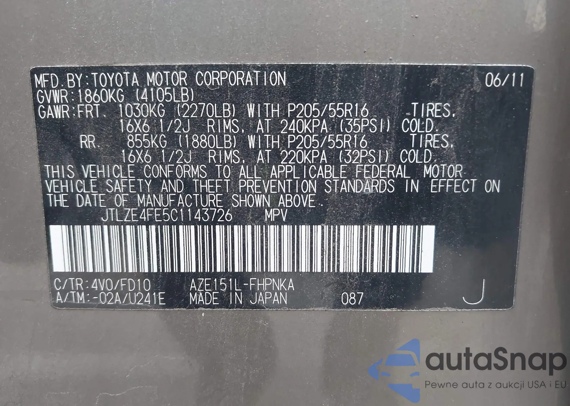 LOT: 43488904 VIN: 4T1BK36B45U061215