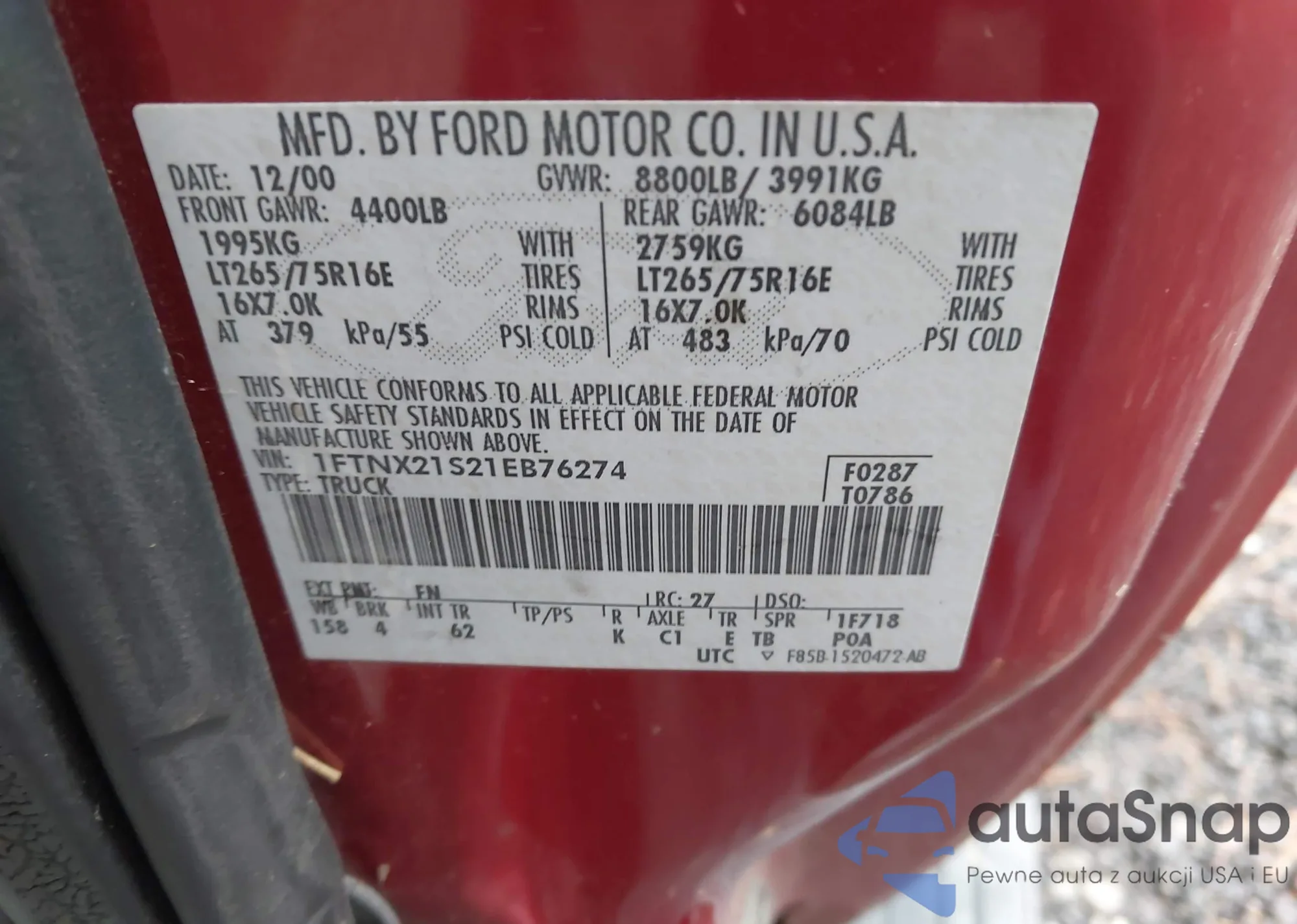• VIN 1FTNX21S21EB76274